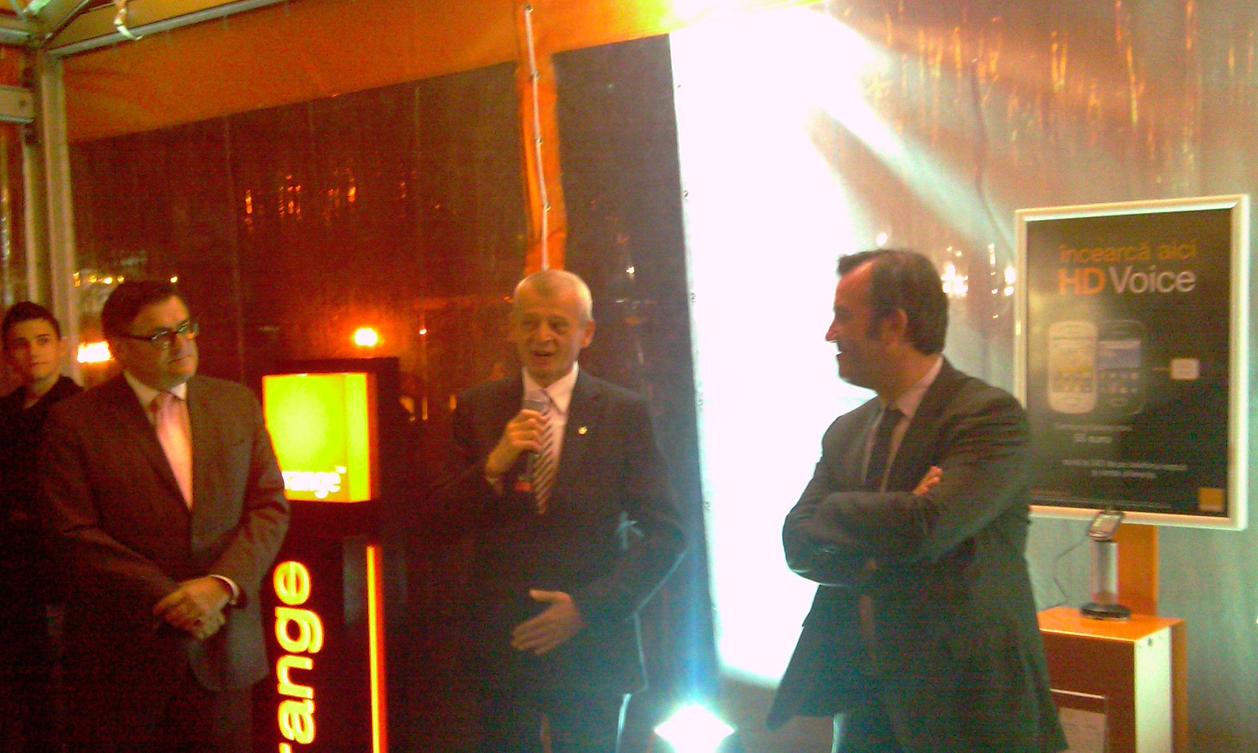 Inaintea proiectiei a avut loc o mica receptie intr-un cort amenajat langa fantana. Au tinut un discurs Thierry Millet, CEO Orange România si Sorin Oprescu, Primarul General al Capitalei, prezent fiind si Ambasadorul Frantei in Romania. Speech-ul edilului Capitalei s-a incheiat oarecum morbid prezentand asemanarea dintre meseria de arhitect si cea de chirurg: “Arhitectul isi acopera greselile cu iedera, iar chirurgul cu coliva”. Este foarte probabil ca edilul-sef sa nu fi inteles exact tematica evenimentului…