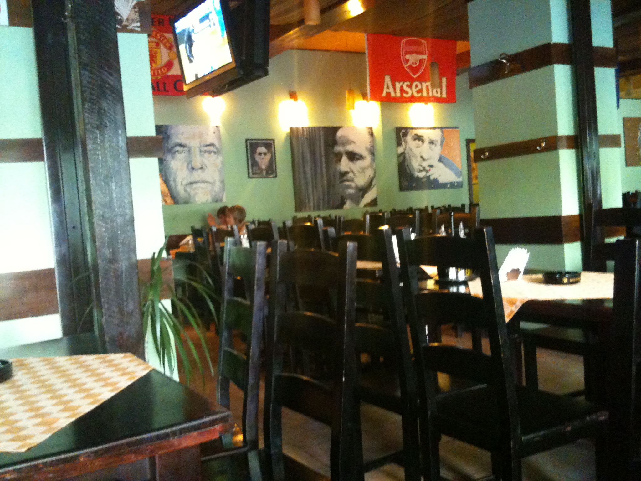 INSIDER: „Pe lângă Palatul Copiilor din Parcul Tineretului, ascunsă undeva între blocuri, taverna lui Florin Călinescu este o surpriză relativ plăcută. Aranjat în stil englezesc, locul pare dedicat microbiştilor care preferă să bea o bere, decât să înjure pe stadion. Are şi wireless, dar cu parolă ca să nu împartă net-ul cu vecinii! Imediat lângă bar, portretul patronului veghează angajaţii. Panoplia marilor actori continuă apoi cu Jack Nicholson, Marlon Brando şi Robert De Niro.