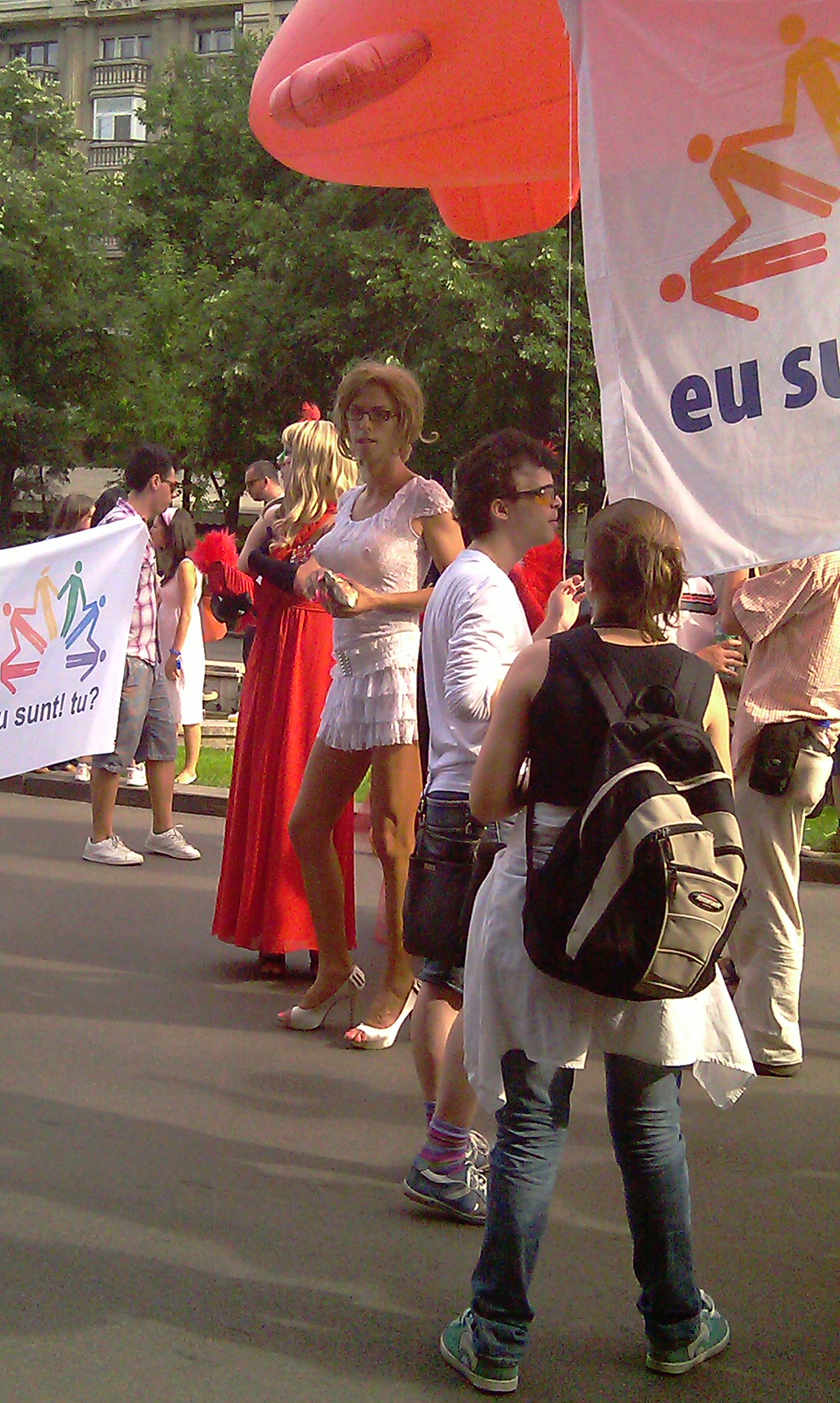 INSIDER: ” Astazi a fost parada de final a “Gayfest 2011 Romania”. Mai multi straini dupa vorba, dupa port… Romanii, cam putinei, adica ori nu exista, ori inca sunt speriati de o societate incuiata.