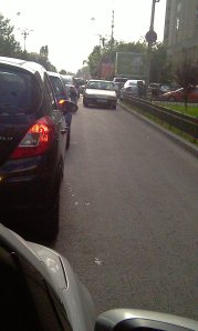 INSIDER: „Dacă vă mai întrebaţi de ce traficul din Bucureşti este infernal la ore de vârf, priviţi imaginea alăturată şi veţi înţelege. Ieri, la ora 18.00, pe Bld. Naţiunile Unite se mergea bară la bără pe „două benzi”, pentru că prima bandă era rezervată unui Daewoo Espero, parcat cu mult talent de nesimţire şi pe contrasens şi la un metru de trotuar!