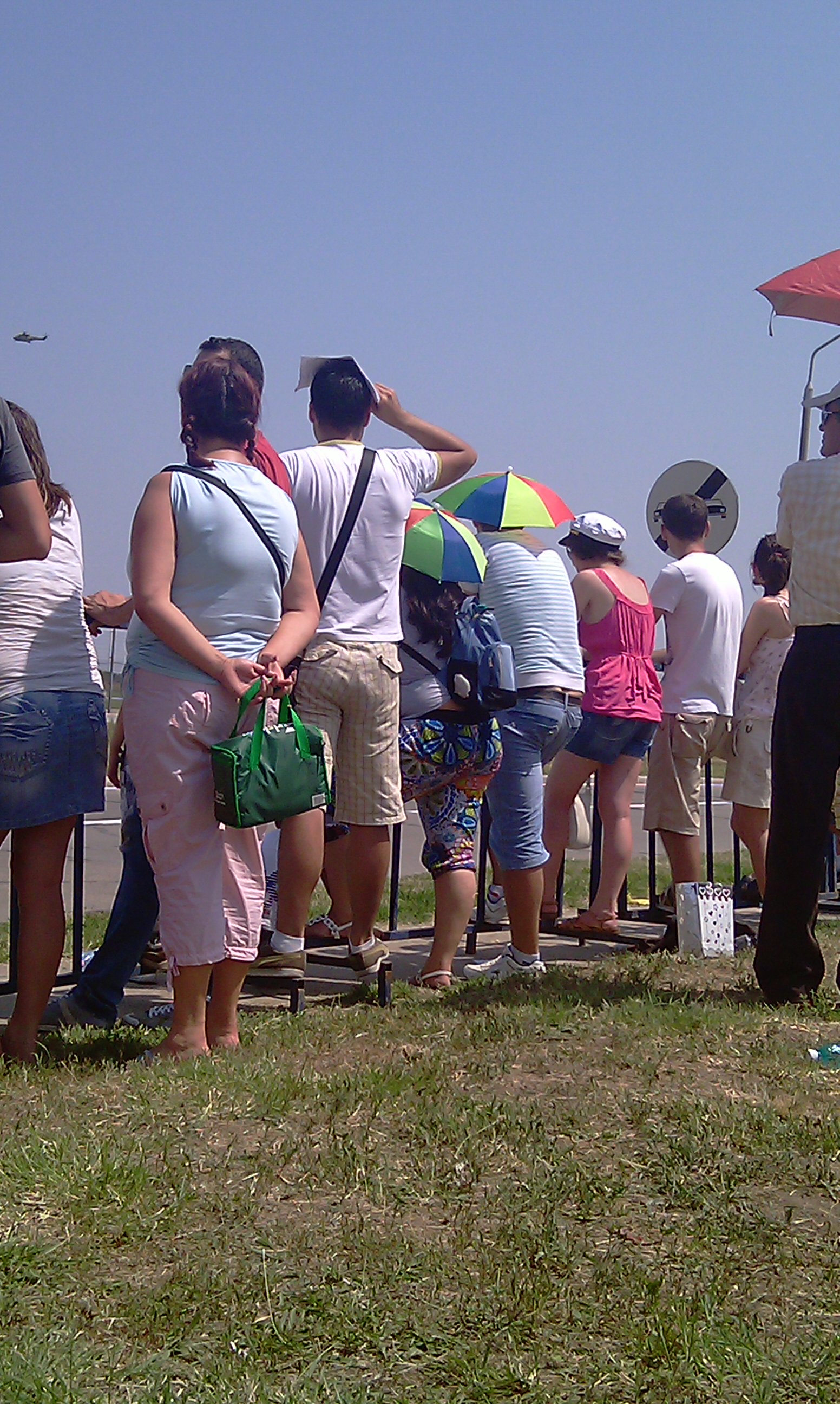 Dis-de-dimineata cateva mii de bucuresteni cu mic cu mare, gravide, copii in carucior sau in brate, in carje sau sanatosi, pasionati in ale fotografiei sau doar amatori, dotati cu palarii, sepcute, umbrele sau doar improvizatii au luat cu asalt locul de desfasurare al mitingului aviatic din spatele Aeroportului Henri Coanda.