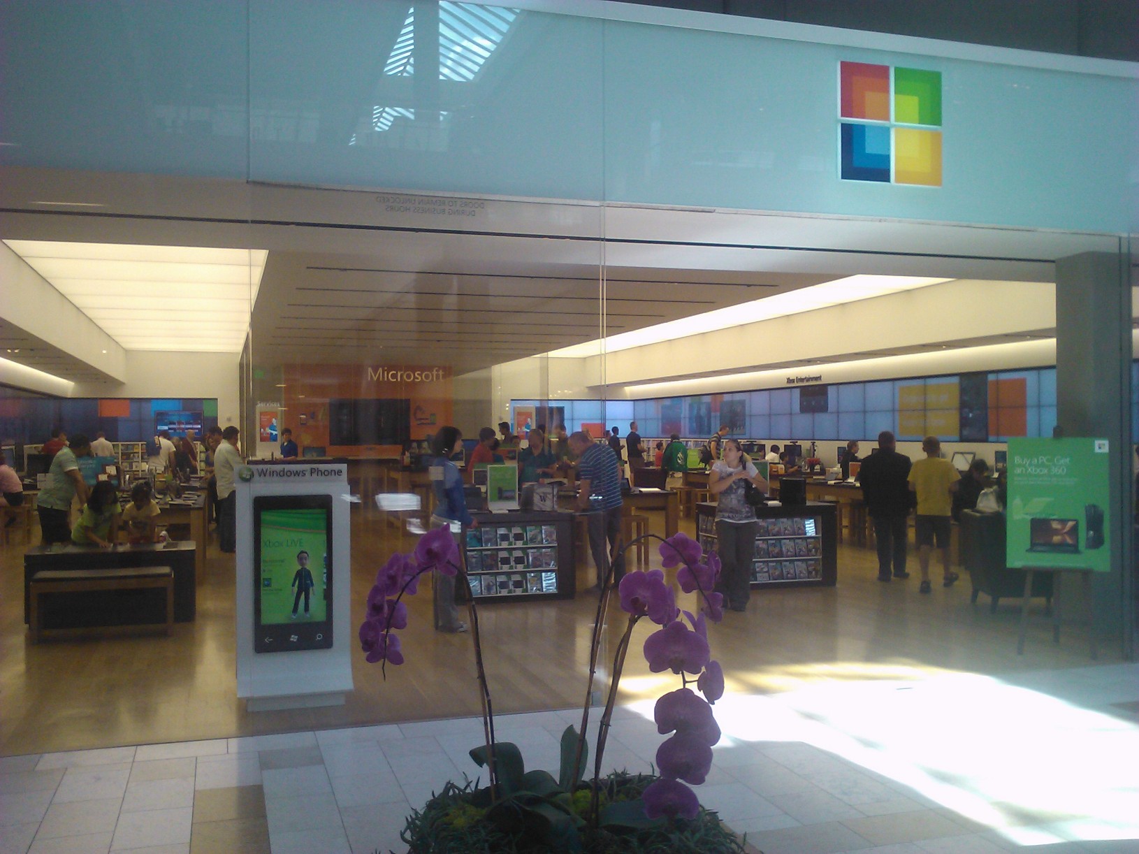 INSIDER: „Magazinul Microsoft in Bellevue, langa Seattle, unde se află „head quarter”-ul companiei. In timp ce la Microsoft Shop erau aproximativ 20 de posibili clienti, la Apple Store erau circa 60 si un spatiu de expunere la jumatate. Ambele magazine sunt in acelasi mall, pe acelasi etaj, la o distanta de 20 metri intre ele.”
