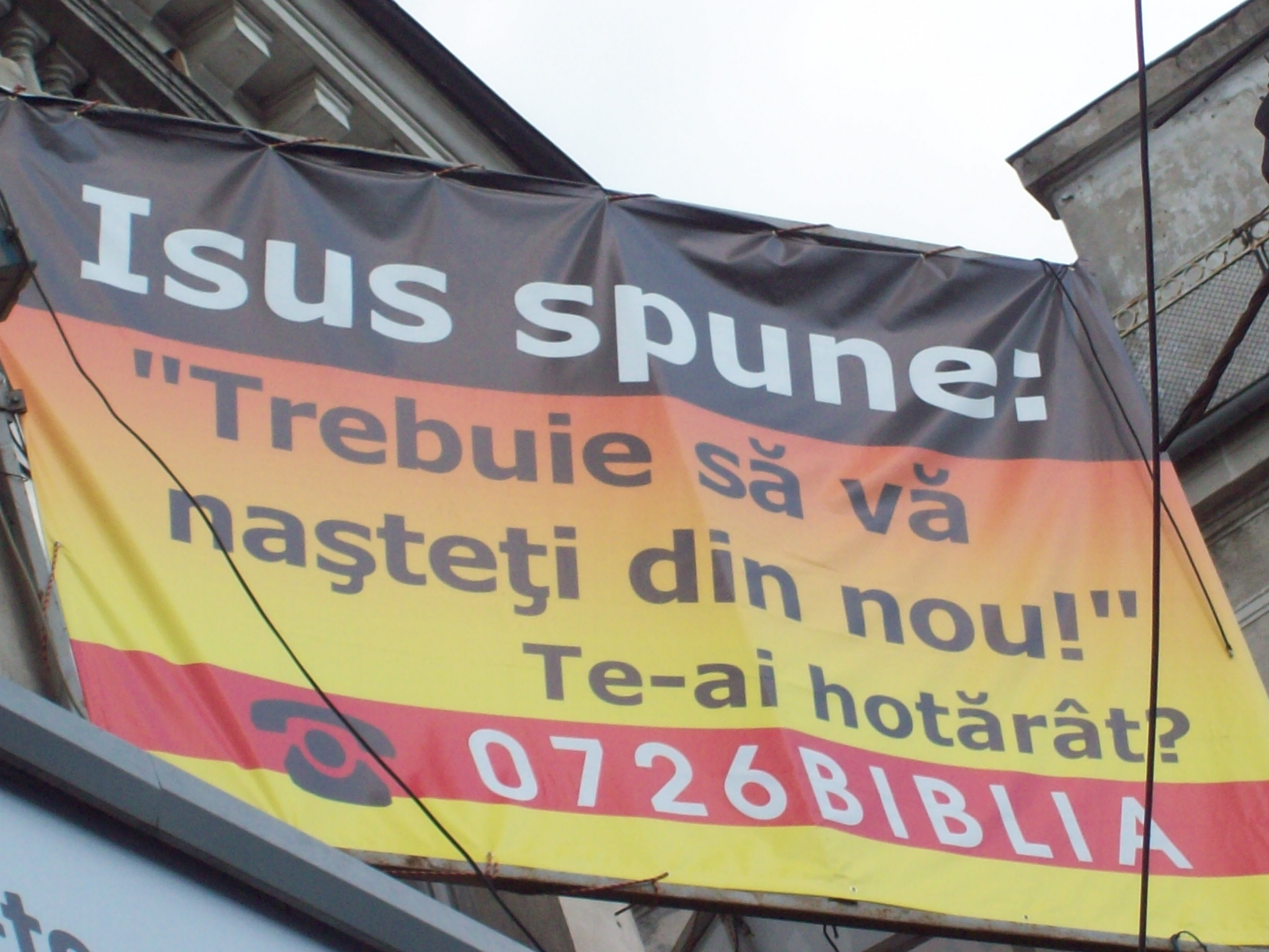 INSIDER: „Din categoria reclame tâmpe cu iz credincios, vă prezint un panou publicitar greu de înţeles. …Adeseori, când trec prin buricul târgului mă întreb ce vrea sa spună cu reclama asta… că eu m-am născut de ziua mea şi m-am şi botezat?! (Iisus se scrie cu doi „i” la ortodocşi).”