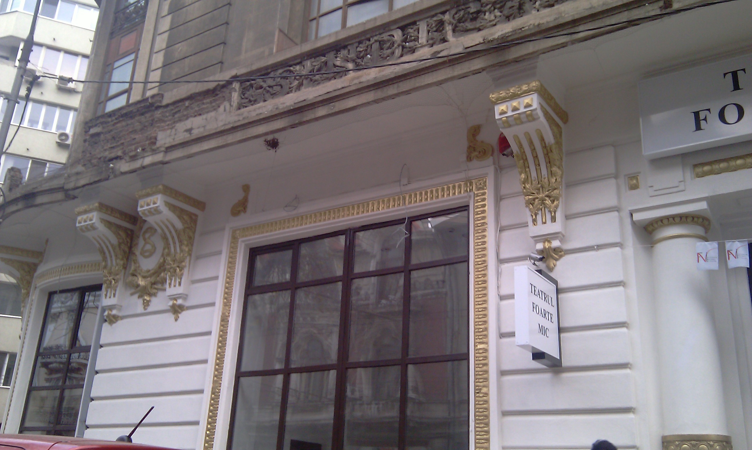 INSIDER: „Teatru Foarte Mic – Bulevardul Carol I nr.21 (zona Piata Rosetti) – a fost in renovari anul acesta. Inca nu „l-am inaugurat” dar ma gandesc ca va fi placut sa nu mai ai sentimentul ca se prabuseste cladirea pe tine in eventualitatea unui cutremur in timpul unui spectacol. Partea trista apare daca ridici privirea catre etajele superioare si vezi cum se termina brusc spoiala stralucitoare.