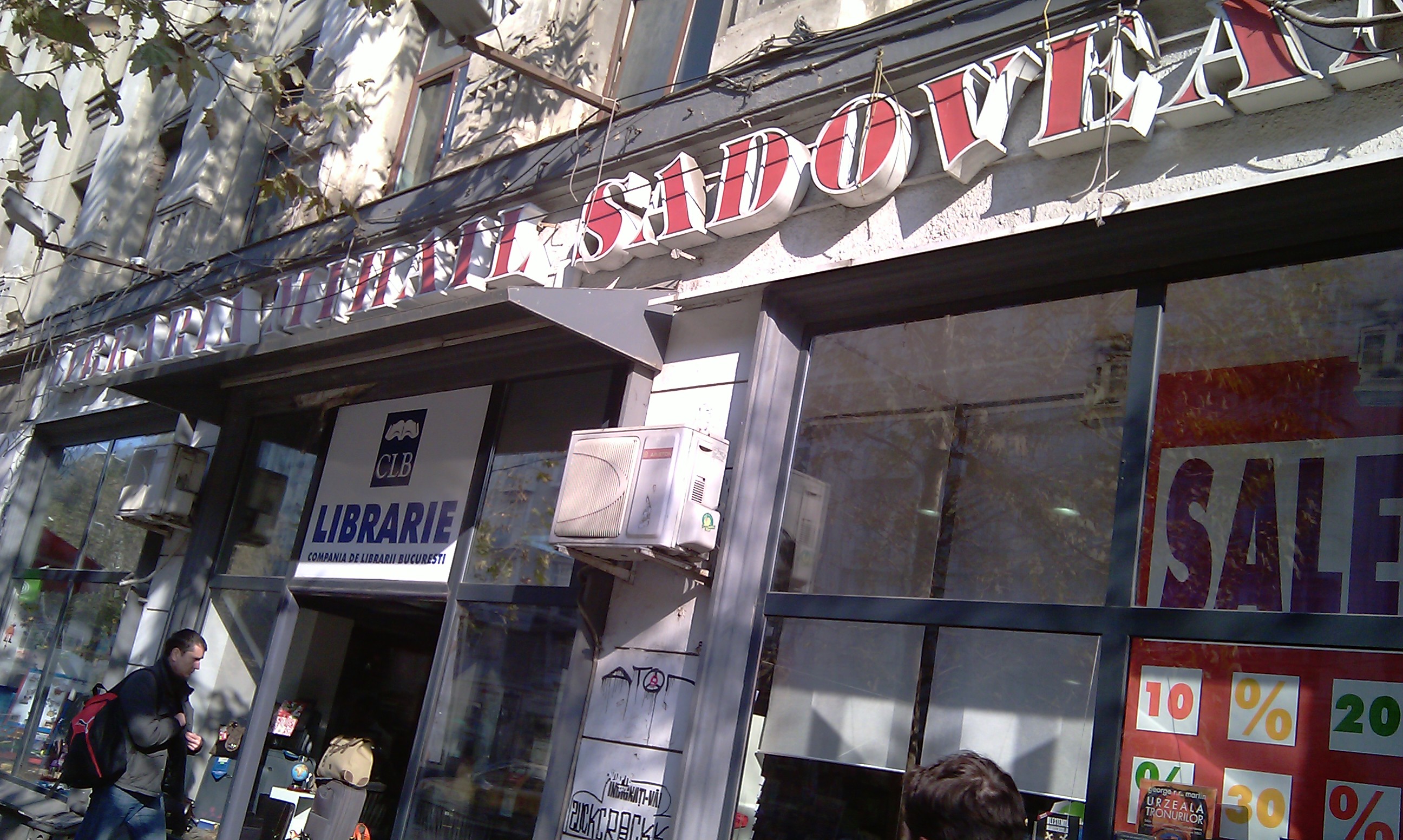 Dacă doamna cititoare de contoare electrice de la mine din bloc scrie „sîmbătă” în loc de „sâmbătă” mă „zgârie puțin în urechi”, dar îi găsesc o scuză lacrimogen-telenovelistică precum lipsa timpului ori lipsa unei biblioteci dotată cu DEX, dar când în vitrina librăriei Mihail Sadoveanu din București de pe Bd. Magheru 6-8 apare asemenea greșeală mi se pare tare trist. Păi tocmai în patria DEX-urilor?! Or veni toate sigilate?!