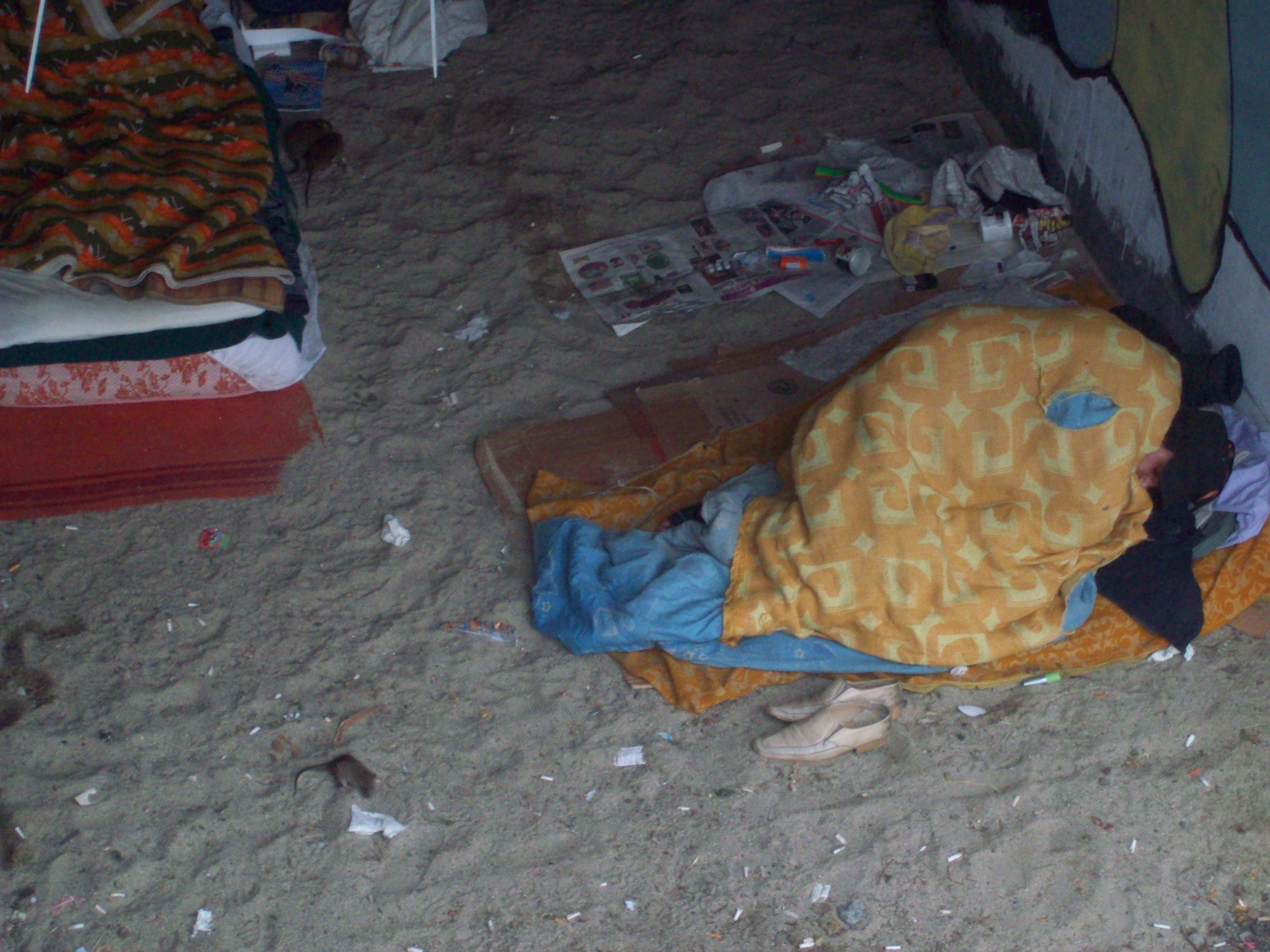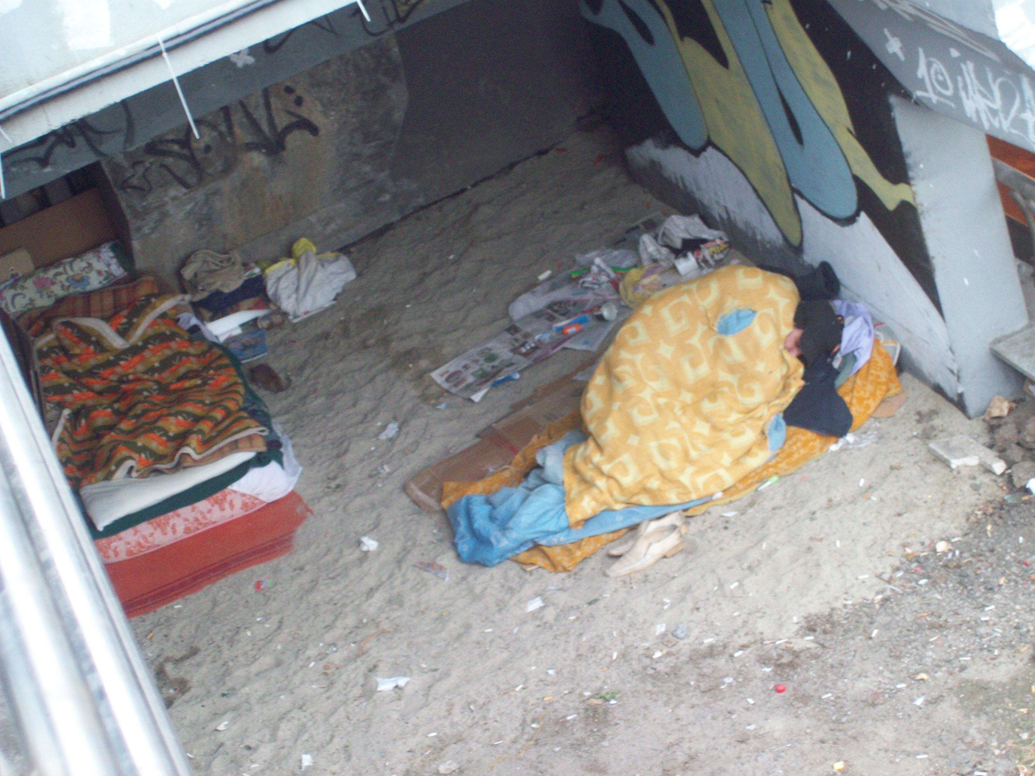Lângă mine, nişte ţigănci care vindeau bureţi şi şerveţele îmi spun: ,,Să vedeţi câţi sunt pe canale, mai încolo şi în faţă la BRD…! Întreb: „Ce, şobolani?” crezând că despre ei este vorba… ,,Nuuu, d-ăştia… oameni dintr-ăştia ai străzii. Sunt din ce în ce mai mulţi în fiecare zi!” Rămân fără replică. …SUNT OAMENI CA ŞI NOI! Poate cândva au avut o casă, o familie, dar la un moment dat au pierdut tot… Unii au fost daţi afară din casele retrocedate, alţii poate nu au mai avut cu ce să îşi plătească ratele la bănci, alţii au rămas fără serviciu şi au luat-o razna, au fost abandonaţi de familie, de stat, de toţi… Sunt din ce în ce mai mulţi! Repet: Sunt oameni ca şi noi!”