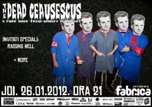 CLUB FABRICA: „Dupa o zi de proteste de ziua lui Nea Nicu…te relaxezi la un concert inedit in Fabrica cu: The Dead Ceausescus “A Tragic Comedy in One Act”. Intr-o tara unde nici dictatorii n-au murit si nici politia n-a uitat ca a fost militie supergrupul format din Gabby (Molotov Cocktail), Stoi (Emil), Albert ( NIste Baieti), Robert (Cobe), Roxana (Ex-Dekadens) si Dj Teo la platane va ofera exact ceea ce e de asteptat de la o trupa de punk rock: Dinamism, Umor, Dezordine si Agitatie (DUDA). Nu vor lipsi Proiectiile, Slagarele, Cravatele de Pionier si Costumele din Epoca de aur. “Alo, alo, tovarasi!, ramaneti la locurili voastre…” Va asteptam costumati “adecvat” pe 26 Ian in Fabrica de la 21:00.”