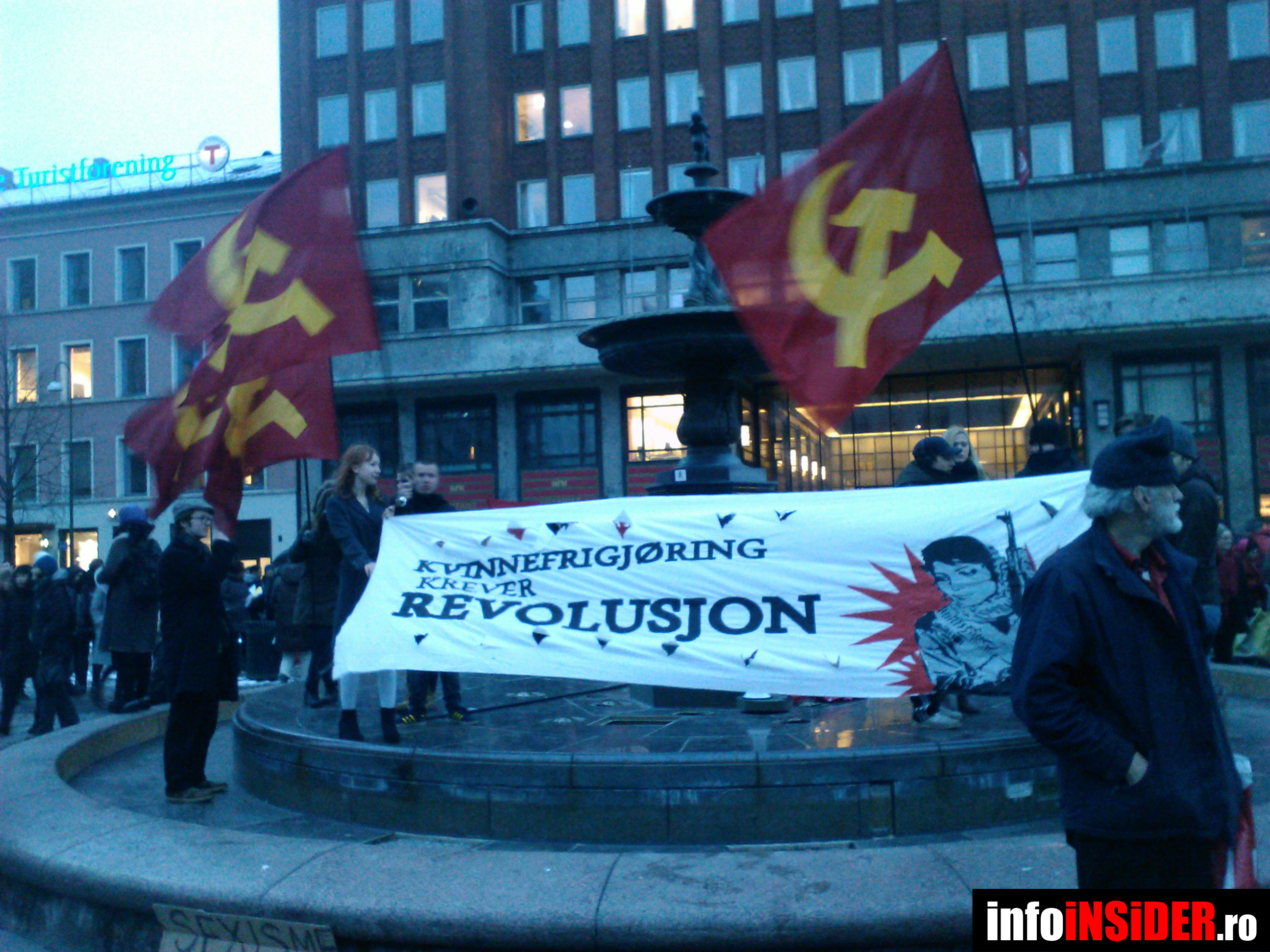 INSIDER: „La Oslo, ieri, de 8 Martie, s-a lăsat cu proteste cu steaguri roşii organizate de Partidul Comunist. Într-una dintre cele mai civilizate ţări din lume, nu credeam că e cineva nemulţumit. Prostituţie legalizată, rege iubit în fruntea Norvegiei, ce şi-ar mai putea dori?! S-a scandat: „Industria porno şi prostituţia sunt violenţă împotriva femeilor” …Întâi te lupţi pentru nişte drepturi (să ţi se dea), pentru ca apoi să te lupţi din nou ca să ţi se ia, să nu te plictiseşti cumva şi să te menţii în formă!”