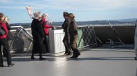 Spre surprinderea mea, nimeni nu ne-a oprit, am luat bilete si bineinteles am intrat imediat dupa suita regala sau mai bine zis chiar o data cu ea! Angajata de la receptie era total fastacita dupa vizita neasteptata intrucat a trebuit sa o intreb de trei ori daca pot sa „imortalizez” ceea ce tocmai scrisese regina in cartea de oaspeti. Am purces pe urmele reginei catre liftul spre trambulina. Intamplator aveam acelasi drum…”