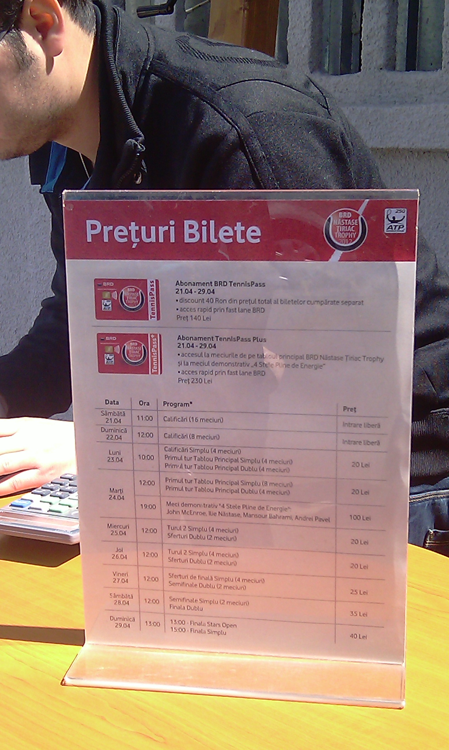 Preţul biletelor este cuprins între 20-100 lei. Tot 100 lei vor plăti şi cei care vor să vadă meciul demonstrativ „4 stele pline de energie” – Ilie Nastatse, John McEnroe, Mansour Bahrami, Andrei Pavel – care se va desfăşura pe 24 aprilie, ora 19.00.