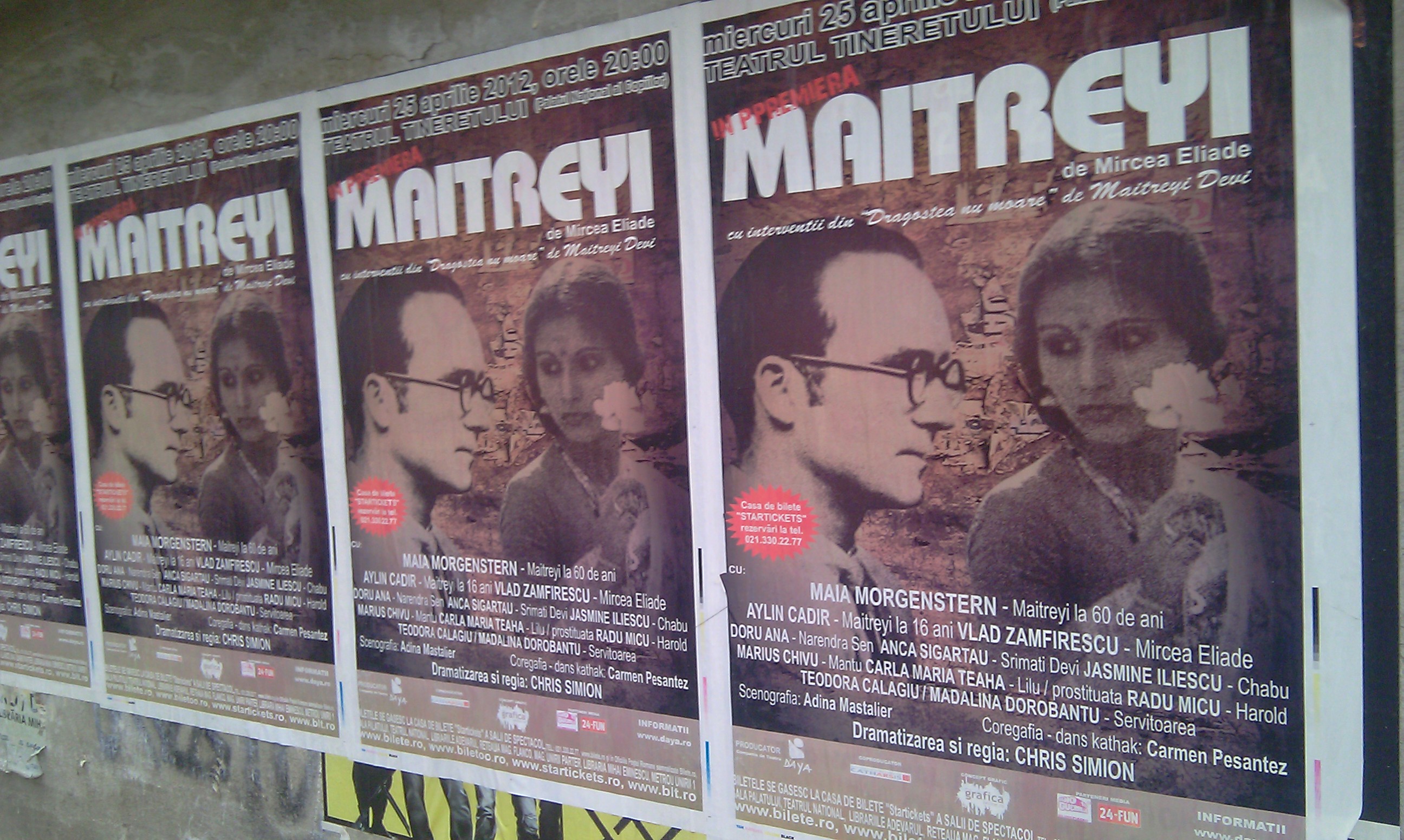 INSIDER: „Mircea Eliade a scris „Maitreyi” dupa ce a fost dat afara din casa familiei Narendra Sen. Ea a scris „Dragostea nu moare” ca raspuns, revoltata de aparitia romanul lui si de toate fanteziile de amor pe care le marturiseste si care o au ca personaj central. Fiecare a transpus subiectiv ceea ce sufletul sau a trait la o intensitate paroxistica, dincolo de reguli, prejudecati, religie, cultura. Spectacolul are la baza o dramatizare dubla, realizata dupa romanul „Maitreyi” de Mircea Eliade, cu interventii din „Dragostea nu moare” de Maitreyi Devi. Este prima data cand aceste doua puncte de vedere se intalnesc pe o scena de teatru.”