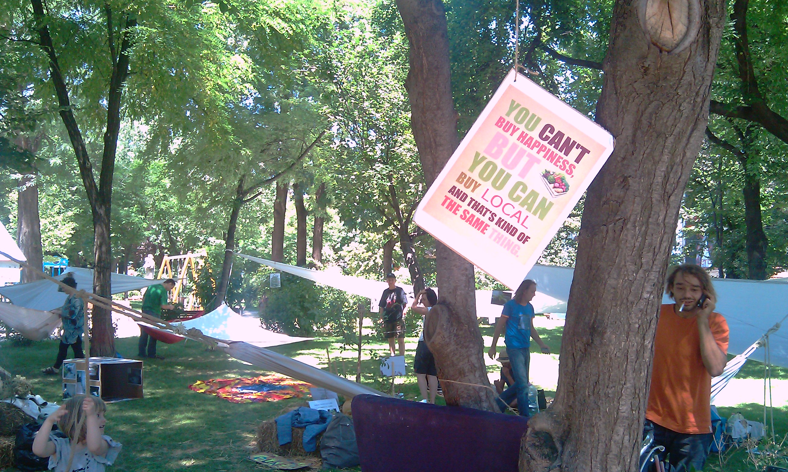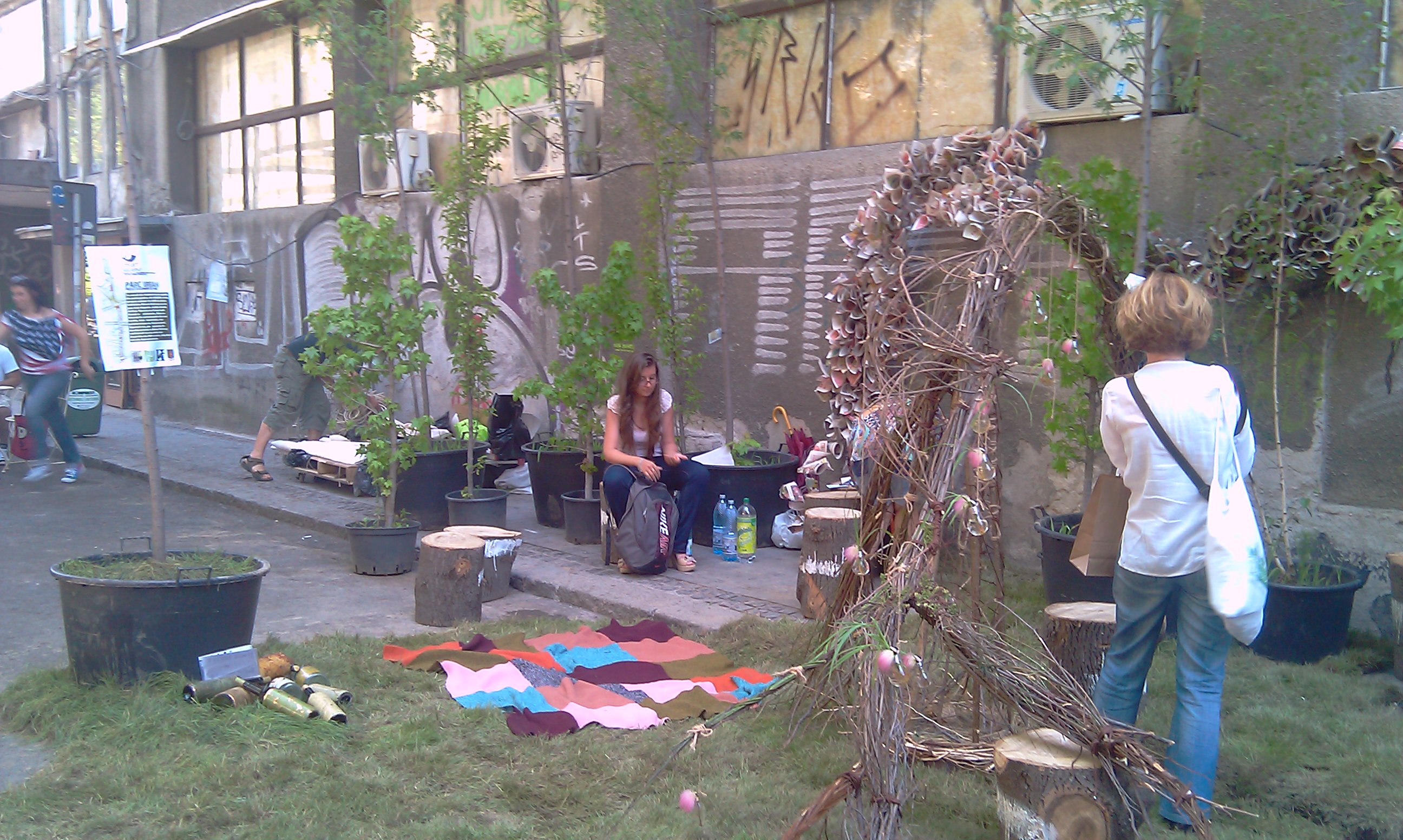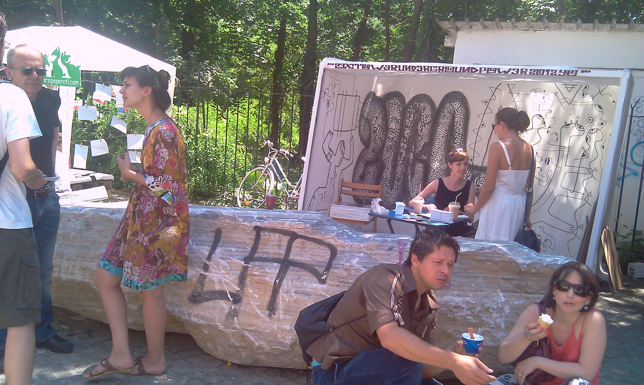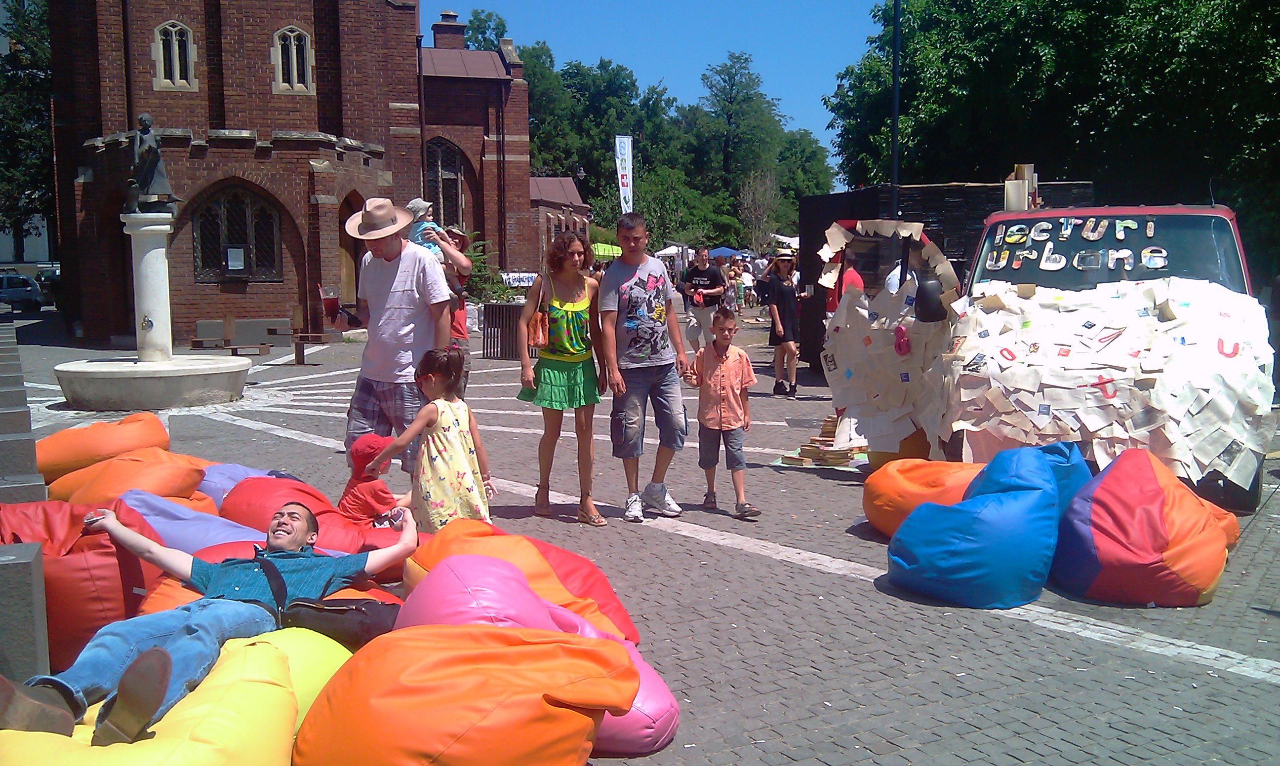 INSIDER: „O parte din Parcul Grădina Icoanei utilată cu hamace şi hipioţi (acum naturişti, vegani, bio) aminteşte izbitor de Woodstock cu zeci de ani în urma. Prieteni ai copacilor, susţinători fervenţi ai reciclării, artişti, boemi, nostalgici sau doar gură cască s-au întâlnit pe strada Arthur Verona. Centru Ceh învaţă trecătorii lucrul cu andrelele, vor să îmbrace (la propriu!) cu hăinuţe noi stâlpii de pe stradă. Desi e foarte cald în Bucureşti, entuziasmul, fervoarea atâtor artişti şi zâmbetul trecătorilor este de-a dreptul reconfortant. Roata olarului, tatuaje, pictură, băieţi cântând la chitară, cărţi, limonadă, biciclete Pegas, grafferi, piscină în mijlocul străzii, teatru de păpuşi, iarbă şi copacei iesiţi ca din asfalt.”
