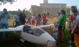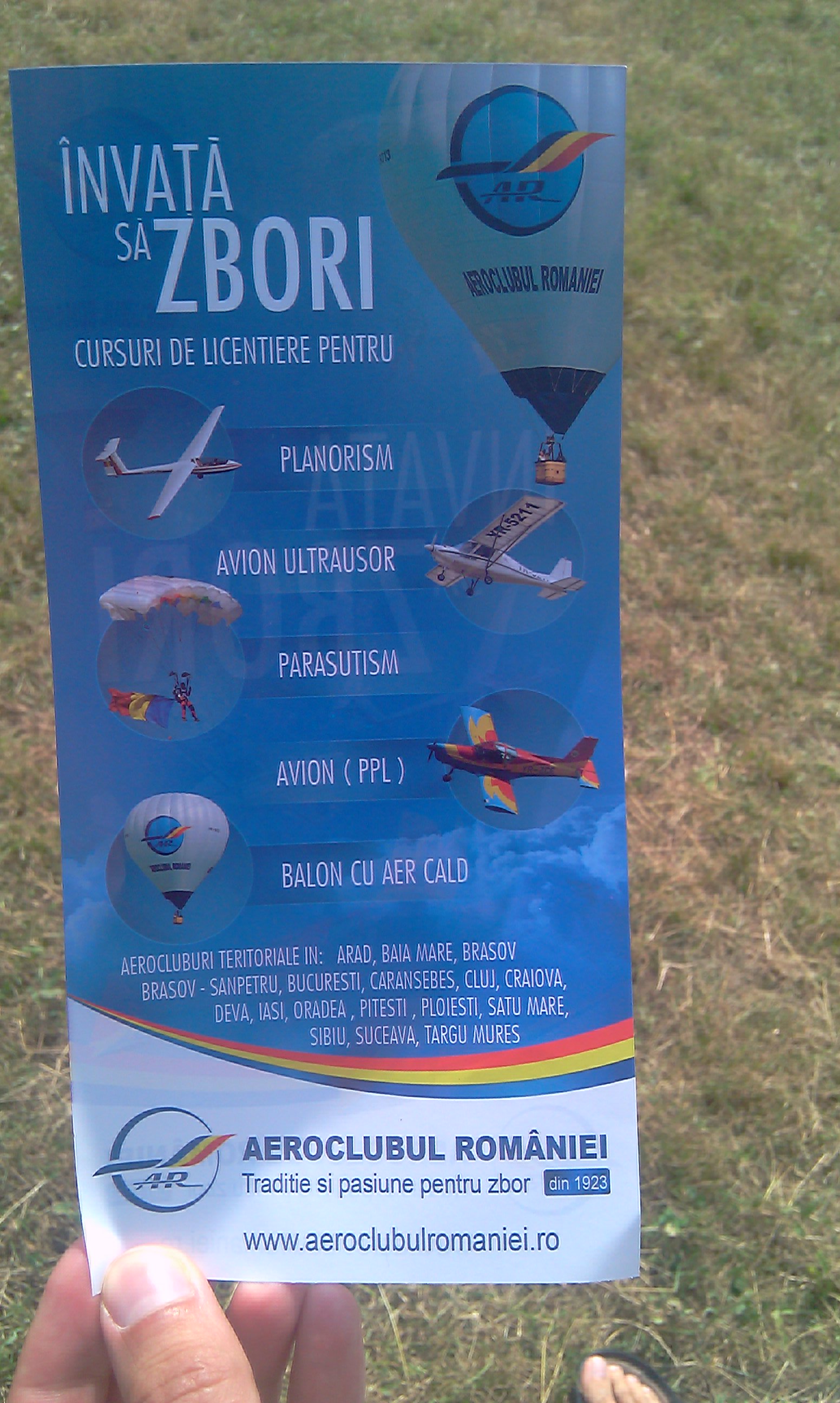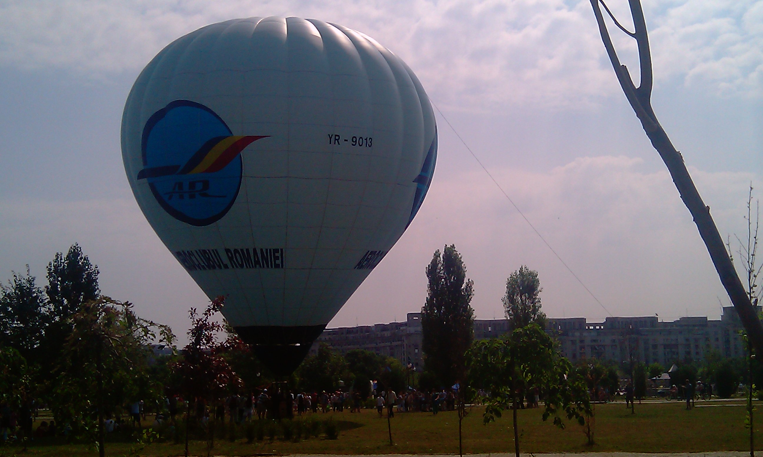Aeroclubul Romaniei a mai expus un planor si spre deliciul celor mici si mari deopotriva si un balon cu aer cald. Toata saptamana i s-a facut reclama la radio si pe noi ne-a umplut de speranta ca vor fi plimbari gratuite cu balonul sa vedem Bucurestiul de sus. Pe drum imi faceam socoteala ca daca intra vreo 20 in nacela si vin cateva sute, am si eu astazi sanse sa zbor… La fata locului nacela era pe jumate plina cu butelii iar cealalta cu cei doi domni vanjosi care struneau masinaria… Nu stiu unde ar mai fi putut intra altcineva peste 10 kg. Evenimentul se va continua pana spre seara si probabil se va intersecta catre seara cu Parada Gay care va avea finalitate in acelasi Parc Izvor.”