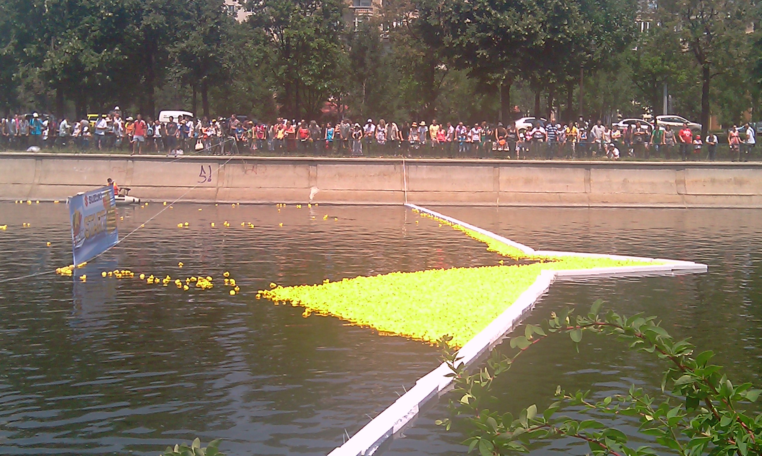 INSIDER: „Deşi nu sunt la prima ediţie, iar Radio ProFM nu este un SRL de cartier, organizarea mult mediatizatului concurs a lăsat de dorit rău de tot… Deşi cei 5.000 de posesori de răţuşte şi gură-cască fără treabă au fost chemaţi la ora 12.00, filmuleţul şi pozele au fost făcute pe la ora 14.00, când soarele ardea, la 36 de grade la umbră, iar pe malu’ Damboviţei, umbra era ca subţireanu’… Cea mai mare problema s-a dovedit de natură inginerească, neavând stabilită o modalitate clară prin care să pună raţuştele pe fugă… Vreo doi pompieri au încercat cu furtunu’, apoi s-au apropiat rugat cu frumosu’, dupa care cineva din public mai isteţ le-a sugerat să taie pur şi simplu aţele, care împreună cu bucăţile de zăpadă artificială formau o „linie de start”.