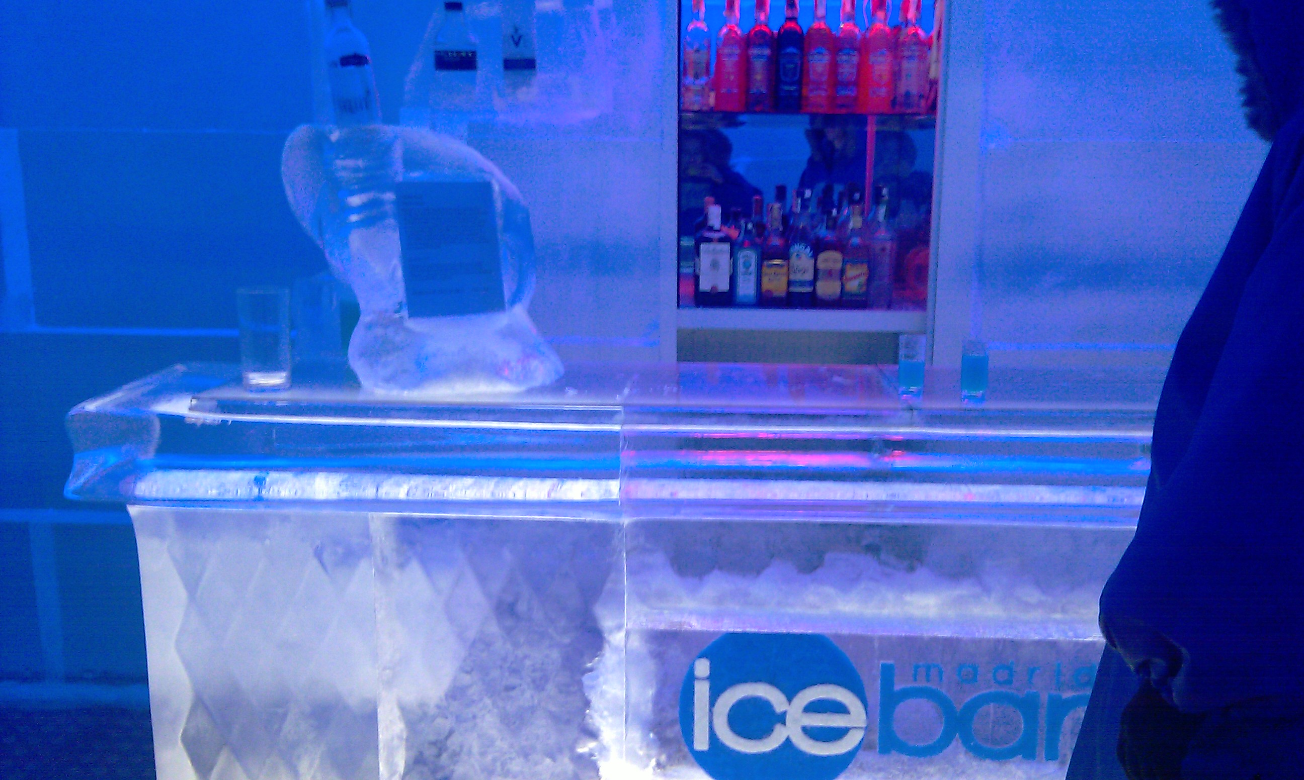 Când am intrat, tocmai ieşeau fericiţi şi îmbujoraţi mai mulţi nordici care probabil găsiseră în sfârşit în Spania un loc cu atmosfera de acasă unde să poată respira. Domnul care ne-a îmbrăcat era şi barman (preparându-ne bautura celor puternici), dar şi artist, tot el fiind autorul operelor de gheaţă din incapere – mai un fotoliu, mai o sculptură! Doar dacă eşti ţintuit în Madrid şi ţi-e dor de Bâlea Lac, s-ar putea totuşi să merite…”