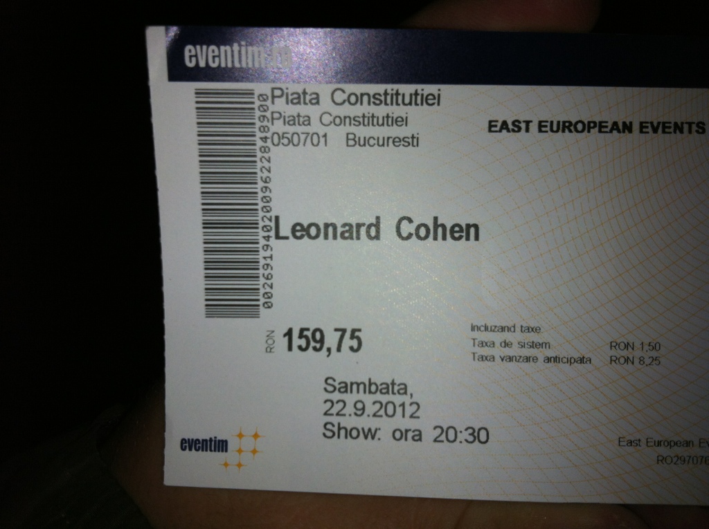 INSIDER: “Leonard Cohen a fost cu mult peste aşteptări, dar organizarea a fost de toată jena. În primul rând, concertul a început la ora 20.00, deşi pe biletul meu scria 20.30! Aşa că am pierdut exact melodia pentru care venisem în mod special. La 20.05 mă apropiam de Piaţa Constituţiei şi auzeam ecoul de la „Dance me to the end of love”, de începuse să-mi gâlgâie sângele… Cea care mi-a scanat biletul a spus că nu e treaba ei ce scrie pe bilet şi că spectacolul a început cu 30 de minute mai devreme. La faţa locului am aflat că au fost emise şi altfel de bilete pe care scria că show-ul începe la ora 20.00.