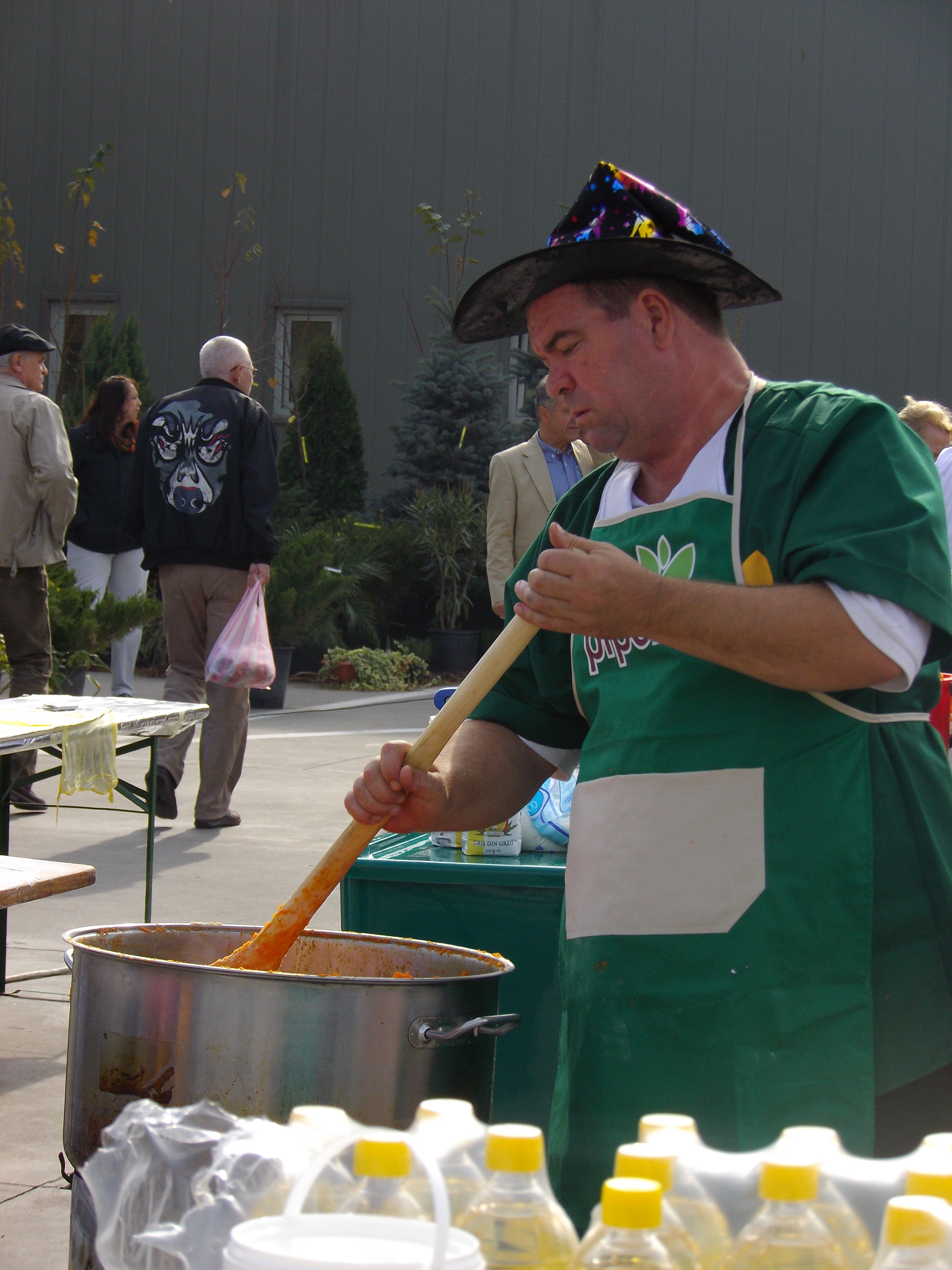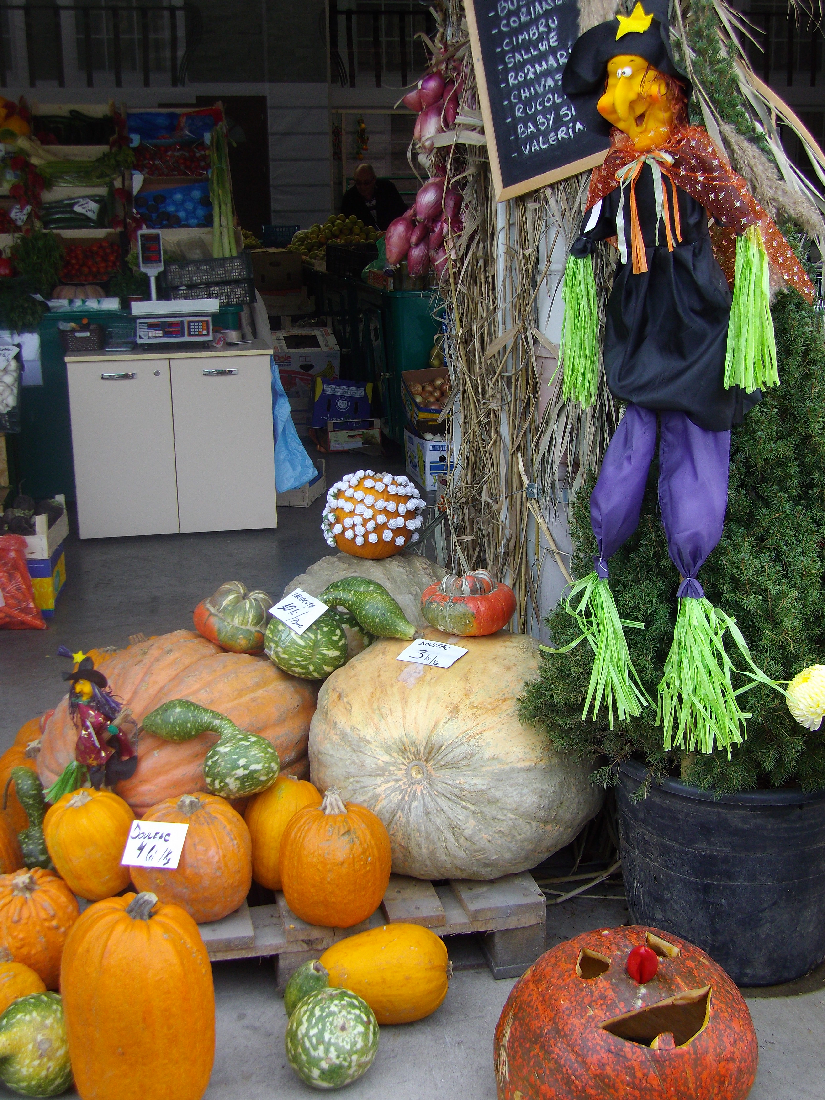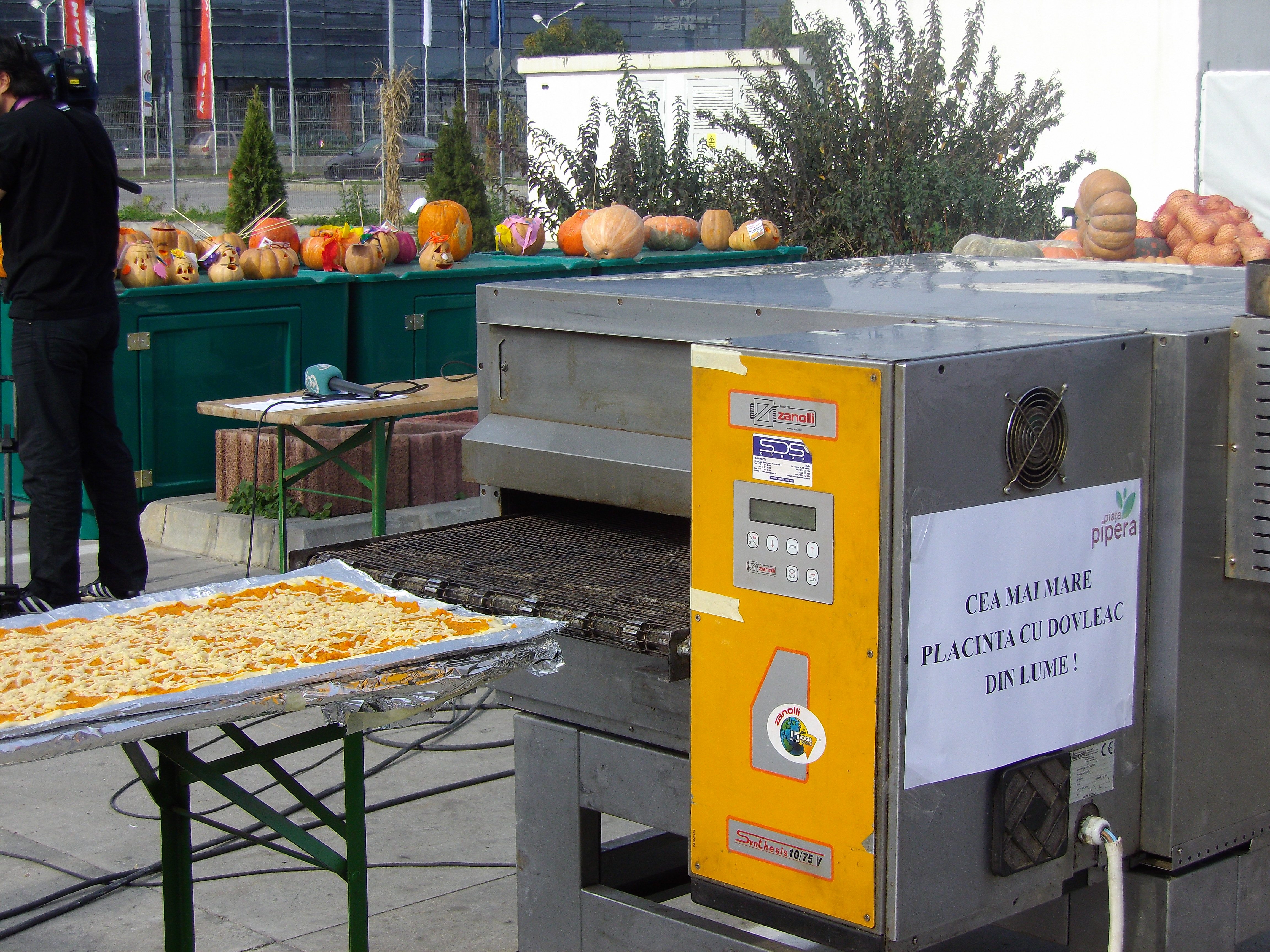 Mai întâi am fost la Piaţa Pipera de lângă staţia de metrou Pipera din Capitală!) după care cu ajutorul lui Google am găsit Piaţa Agroalimentară Pipera din comuna Voluntari din Ilfov, unde e primar dl. Pandele, după care ne-am mai învârtit două străzi şi iacătă ajunsăram. Pe la 12.30 încă mai ornau la record şi mirosea grozav a dovleac, încât am cumpărat o plăcintă gata coaptă. Pret 10/10 cm =4 lei.”
