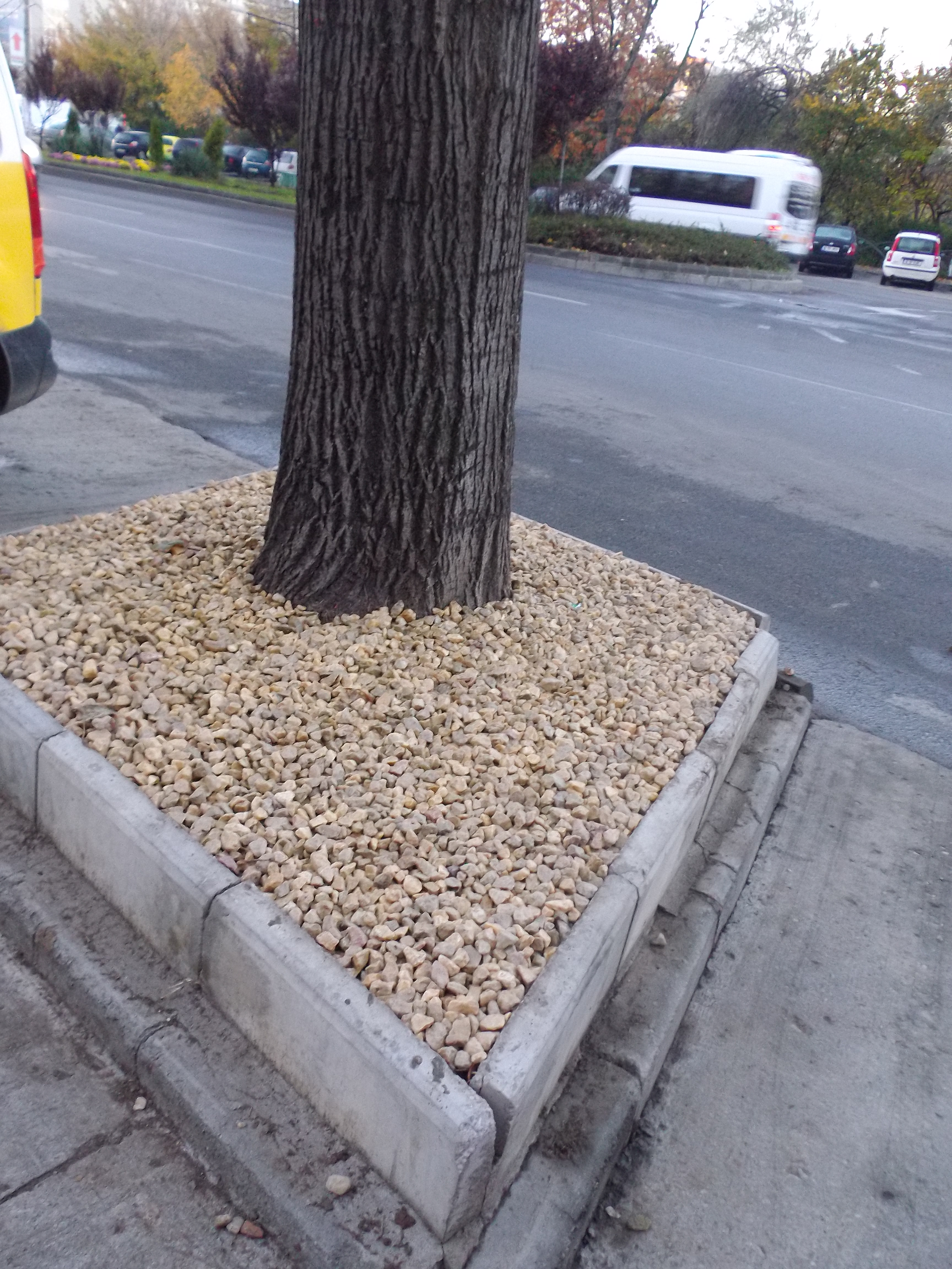 Ieri seară, când am parcat lângă parc, sub lumina farurilor am observat cum pietricelele pentru decor de la baza copacilor luceau într-un mod straniu şi uniform… Când m-am apropiat am dezlegat misterul mirosului îngrozitor care ne-a lovit cartierul – un sistem “ingenios” de antifurt în materie de design spaţii verzi, prin care pietricele sunt lipite între ele… O amenajare făcută o dată pentru întreg mandatul noului primar!