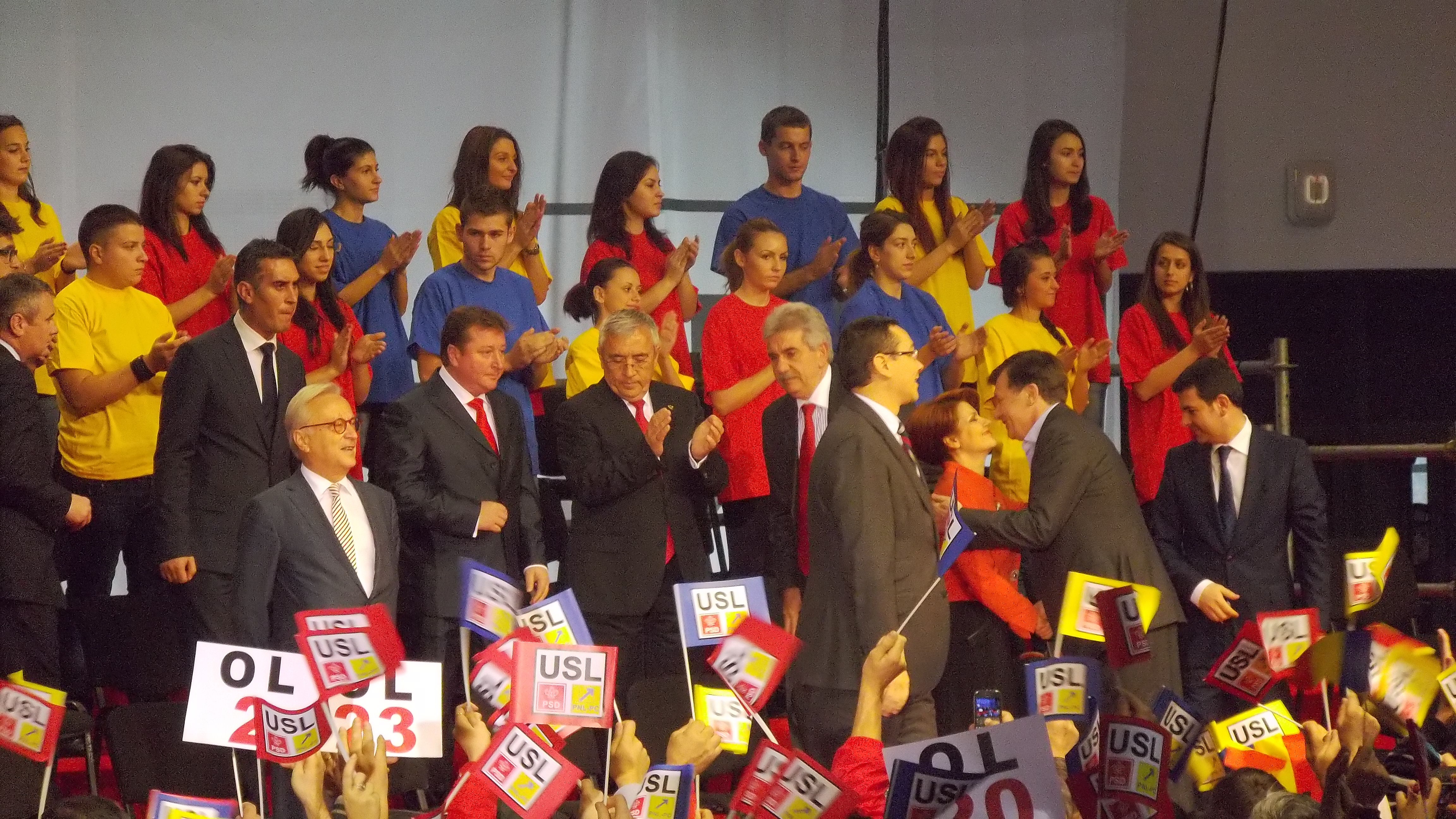 INSIDER: „Tocmai astăzi, premierul Victor Ponta a urcat cu stângul pe scena Sălii Polivalente din Craiova, împiedicându-se chiar de ultima treaptă, dar reuşind totuşi să nu se prăbuşească peste mulţimea adunată. O fi vreun semn!? Conducerea USL, tot staff-ul şi 5.000 de olteni se înghesuiră pe o suprafaţă de 10.000 de metri pătraţi ca să pună punct campaniei electorale pentru alegerile parlamentare de duminică. Invitat special – Hannes Svoboda, preşedintele Partidului Socialiştilor Europeni din Parlamentul European.