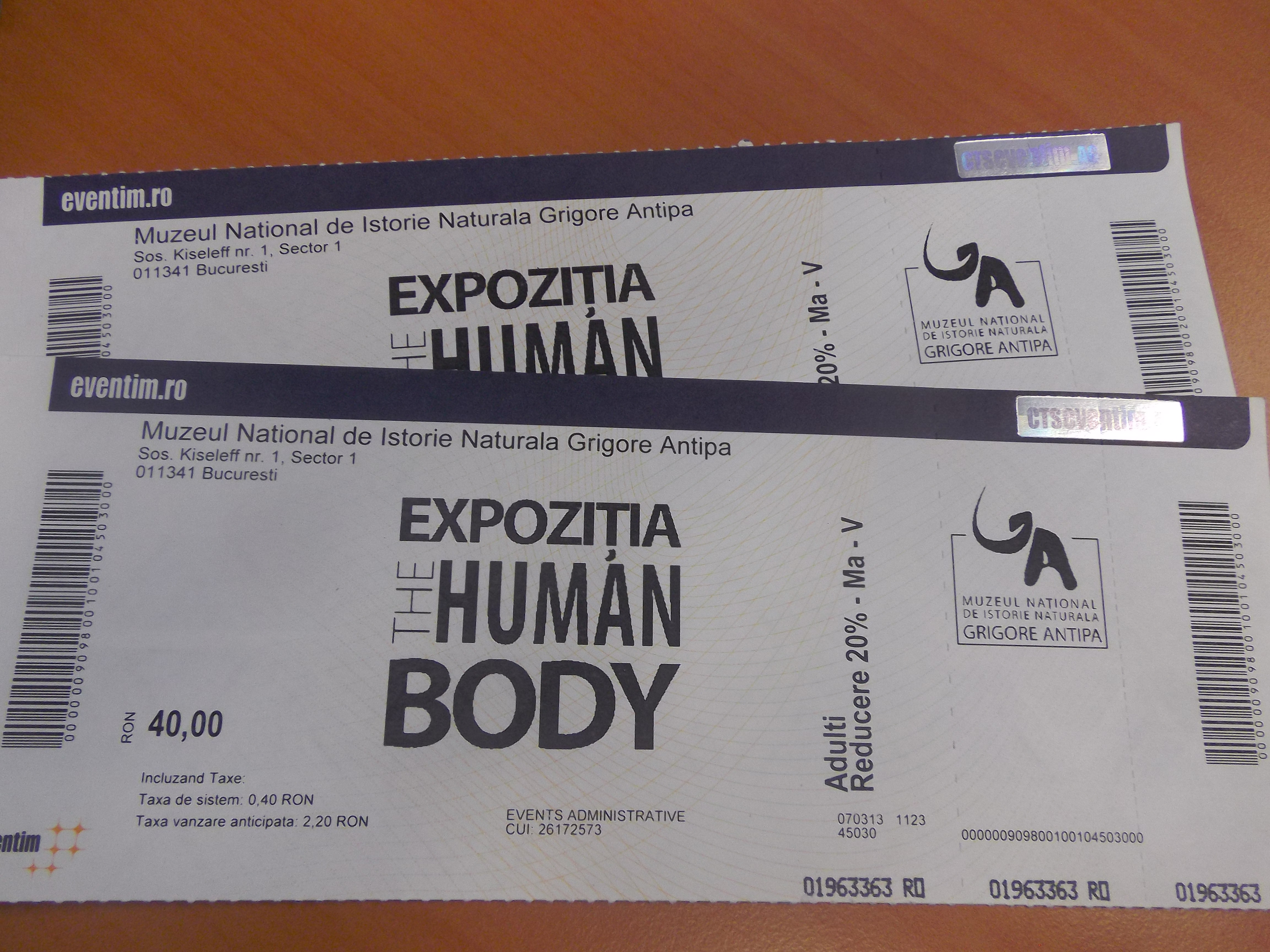 Albumul expoziţie Human Body – 54 lei. Biletele au preţuri cuprinse între 32 şi 60 de lei/ persoană şi, respectiv, 85 şi 135 de lei/ grup. Totodată, grupurile de peste 10 copii vor avea acces la expoziţie în baza unui tichet în valoare de 30 de lei/ persoană. Copiii cu vârste mai mici de 7 ani beneficiază de acces gratuit.” (Foto: RTV.NET)