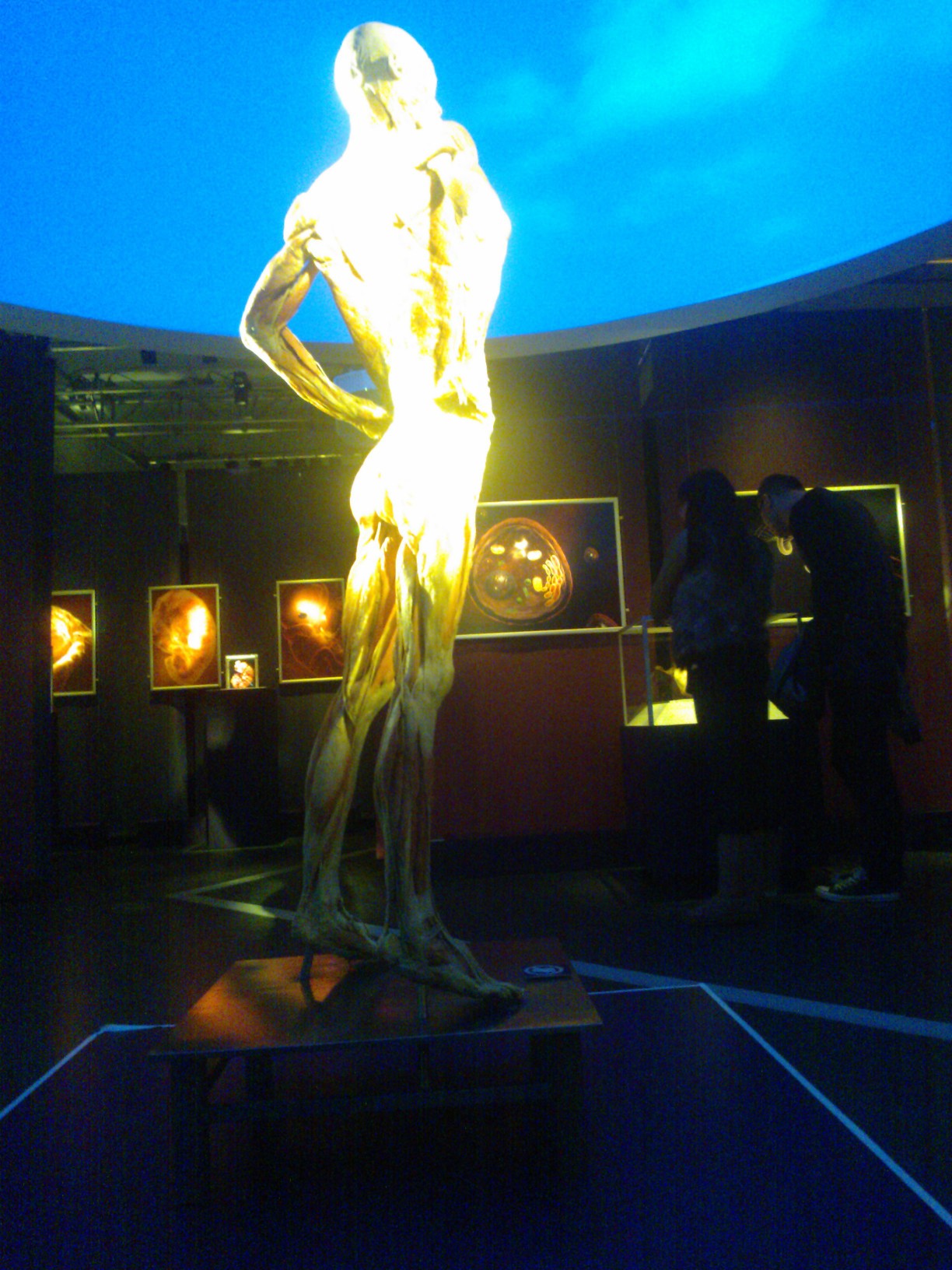 Faptul că nu ai voie să faci poze te face să intri în expoziţie relativ frustrat. Foarte mult personal ajutător, ghizi, supraveghetori dornici să-ţi împărtăşească informaţii suplimentare. În prima zi de vizitare pe la ora 17 erau mai mulţi decât vizitatorii! La intrarea, în fiecare sală sunt nişte prezentări realizate cam scolastic, autorul lor fiind nehotărât şi oarecum confuz cui i se adresează, apar curiozităţi puerile despre corpul uman amestecate printre informaţii şi denumiri complicate. Ba pare că este prezentată anatomia pentru ingineri, ba intri de tot în ceaţă ca într-un seminar de la facultatea de medicină direct în anul 3. Mă întreb oare cum vede un absolvent de medicină expoziţia!?
