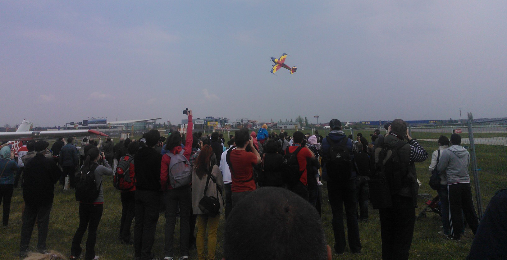 Cei de la şcolile de aviaţie aveau în ofertă, pe lângă zboruri cu avionul şi adrenalină cu parapanta, simulator de zbor 89 lei/ oră sau cursuri pentru însoţitoare de zbor. Au fost expuse diverse tipuri de aeronave uşoare şi ultrauşoare, inclusiv Vlaicu II. Piloţii acrobaţi Hawks of Romania au făcut un adevărat spectacol, iar amatorii de senzaţii tari puteau chiar să urce alături de ei în avioane (1 oră de zbor – 140 de euro). După show, au coborât din ceruri şi au semnat autografe spre deliciul publicului. Prezent la eveniment, Mihai Mărginean s-a fotografiat cu fanele şi parcă murmura printre dinţi: „Mă iubeşte femeile/ Şi e moarte dupe mine..”.”