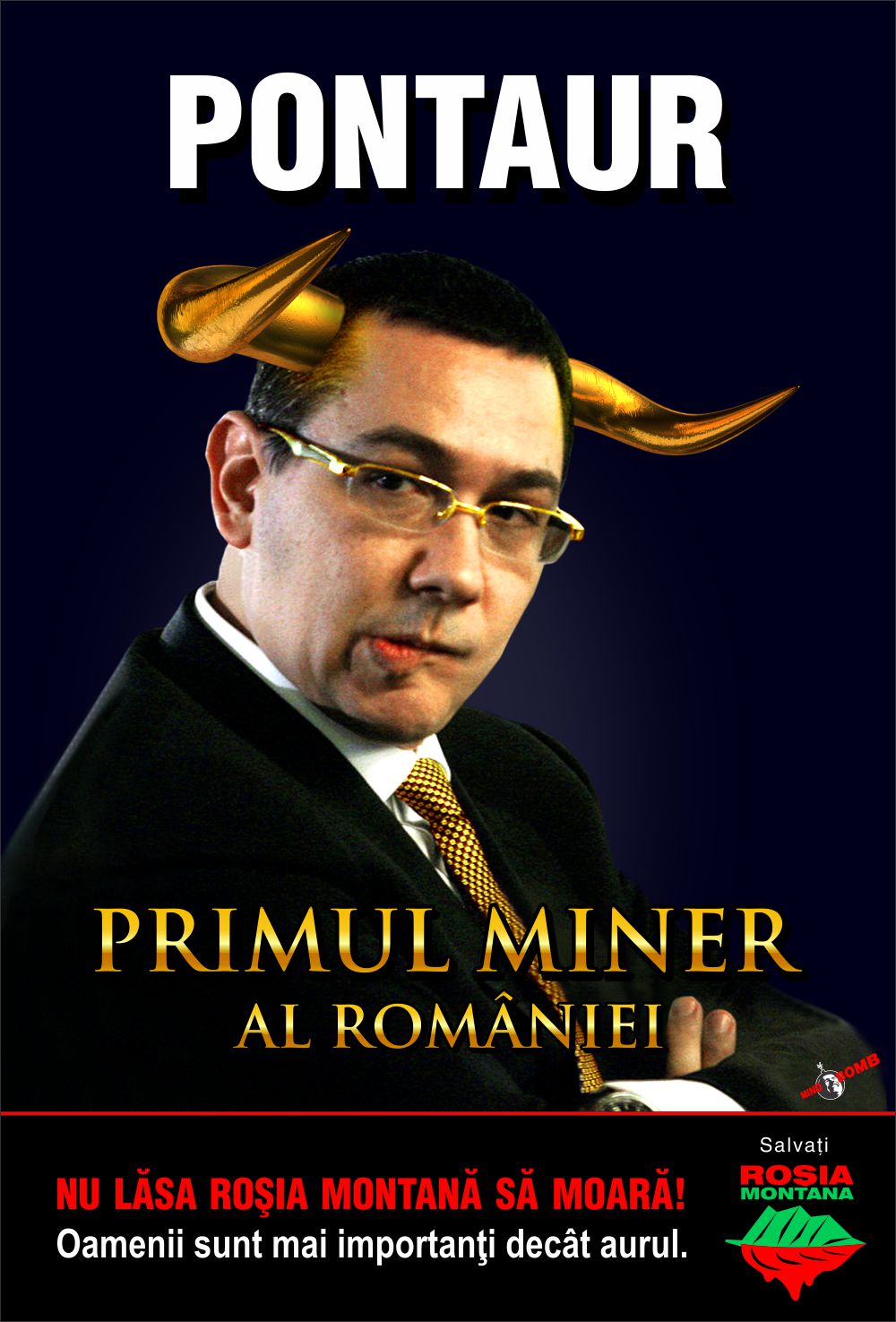 MindBomb: „Pontaurul are capul tare, tupeu cât încape, e fudul şi inconştient, n-are pic de ruşine. El minte cum respiră şi dă vina pe alţii. Guvernul lui a pornit, pe şest, un demers de avizare totală, cu încălcarea sau ocolirea prin derogare a multor prevederi legale pentru acordul de mediu. Totuşi miniştrii lui dau declaraţii liniştitoare, fiindcă au ordin să nu recunoască nimic – până când pentru populaţie va fi prea târziu să împiedice demararea proiectului cianurist. (…) Astfel, USL va încerca să treacă o lege ce va permite să fii deposedat de proprietăţile tale la bunul plac al oricărei companii care obţine licenţă de exploatare a mineralelor din partea Guvernului. Vor fi aduse în Parlament spre aprobare acte normative scrise cu dedicaţie pentru Roşia Montana Gold Corporation, menite să îndepărteze unul câte unul obstacolele juridice întâmpinate de companie. Dar, în calitate de legi, ele vor afecta direct viaţa fiecărui cetăţean român.