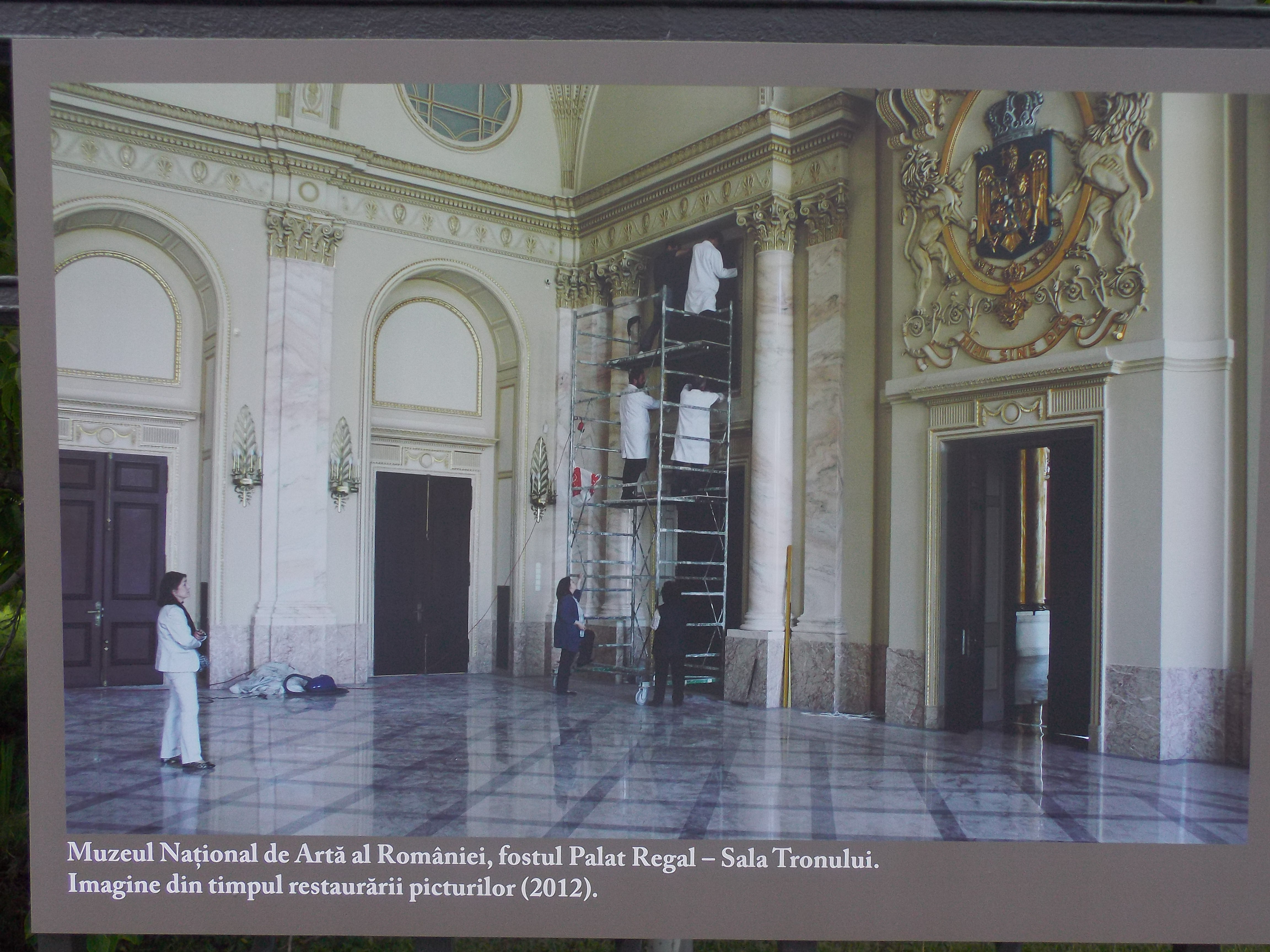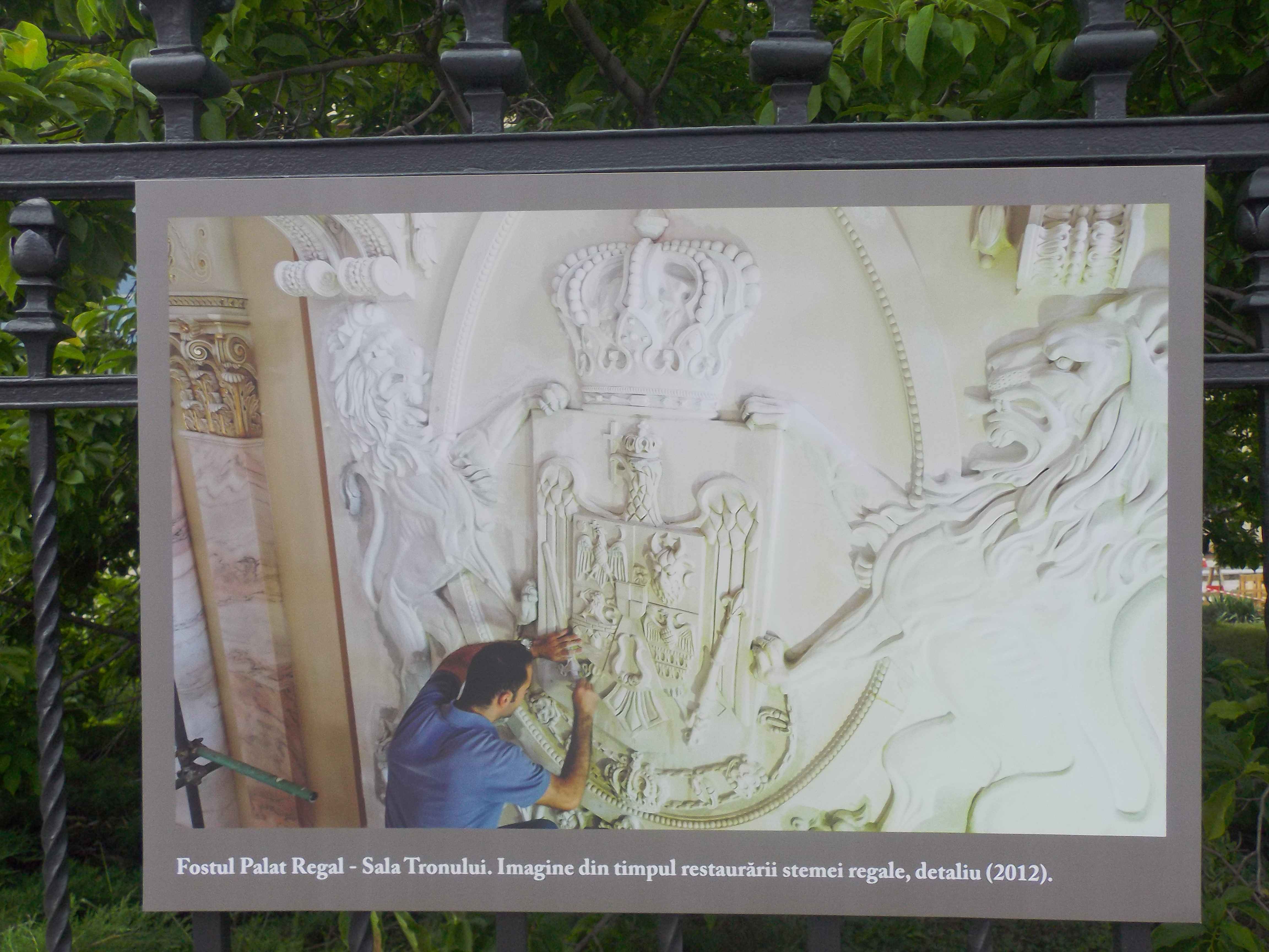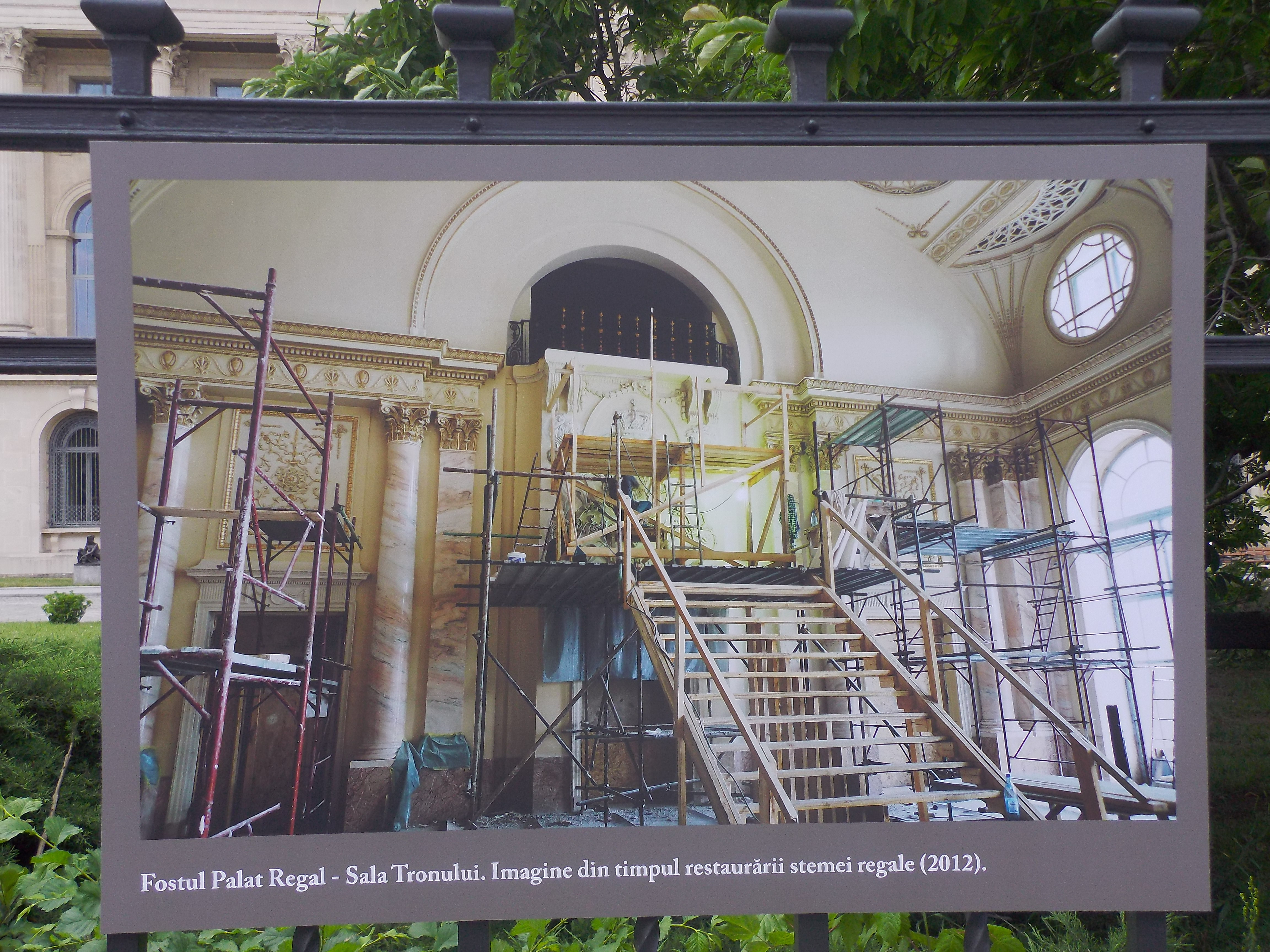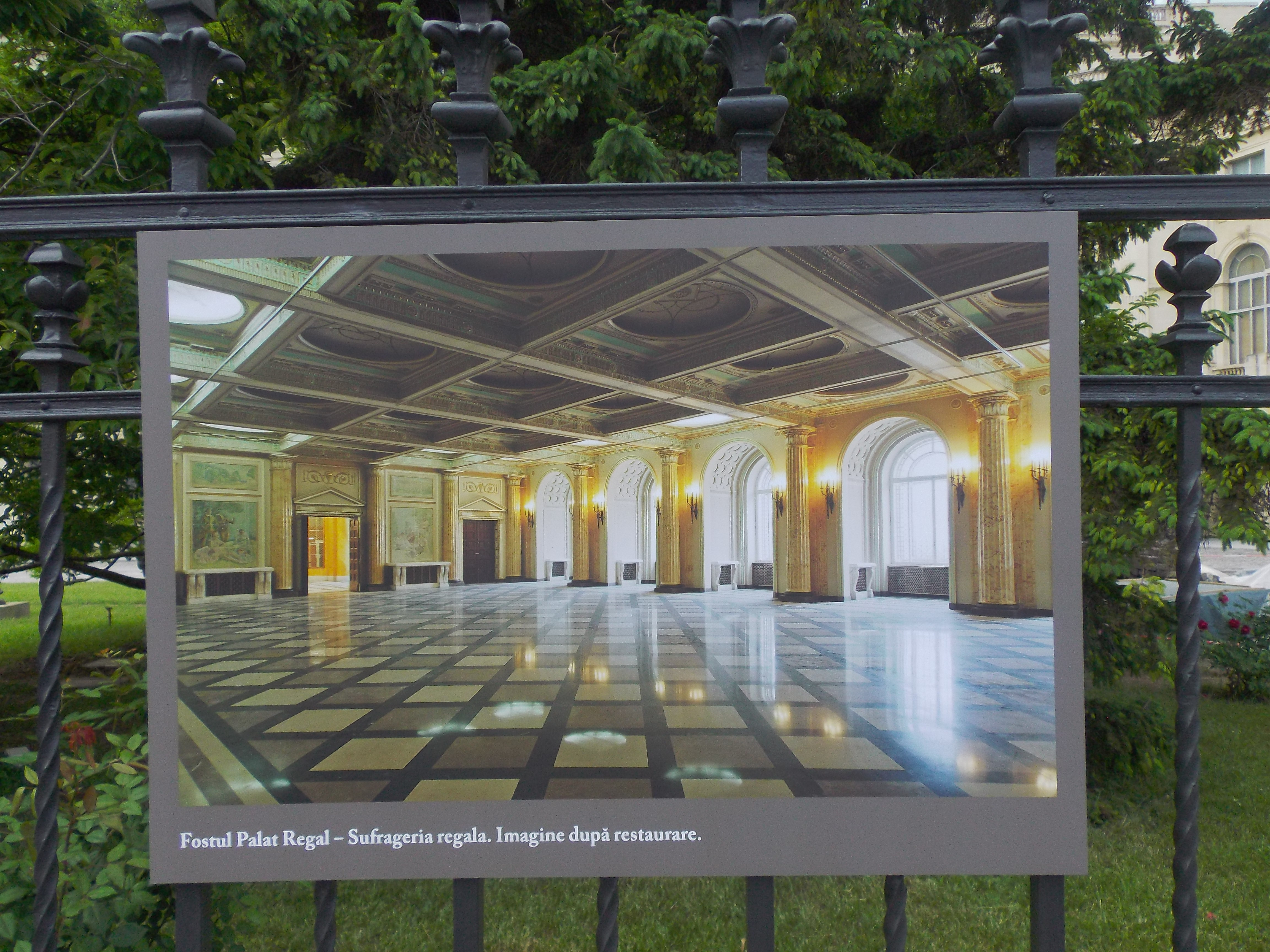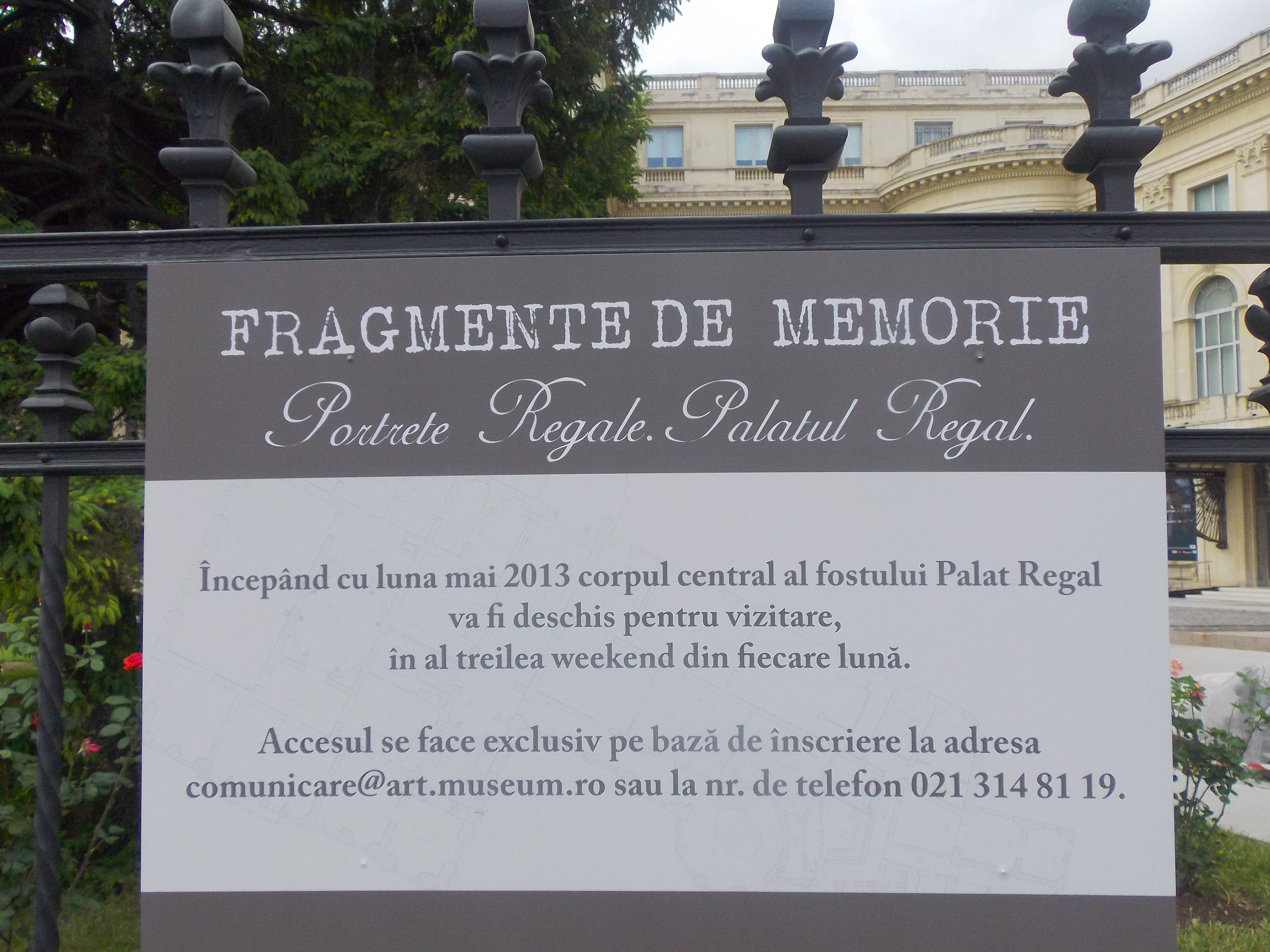 Pentru informarea trecătorilor, pe gardul Palatului Regal, sunt expuse timid doar câteva fotografii ale corpului central în diferite momente din istoria României, precum şi din timpul restaurării. Păcat că nu au mai rămas bani şi pentru promovare!” DETALII