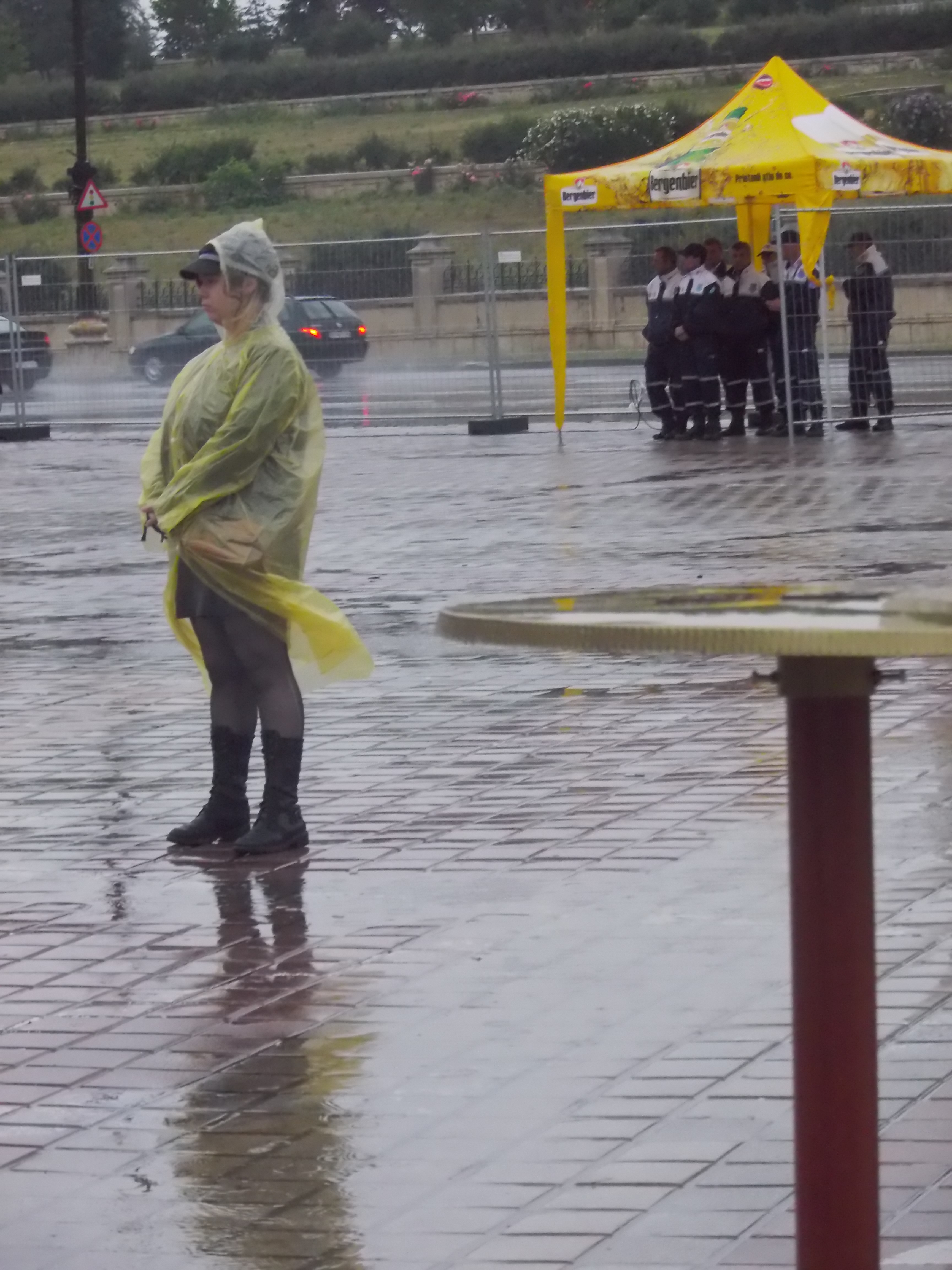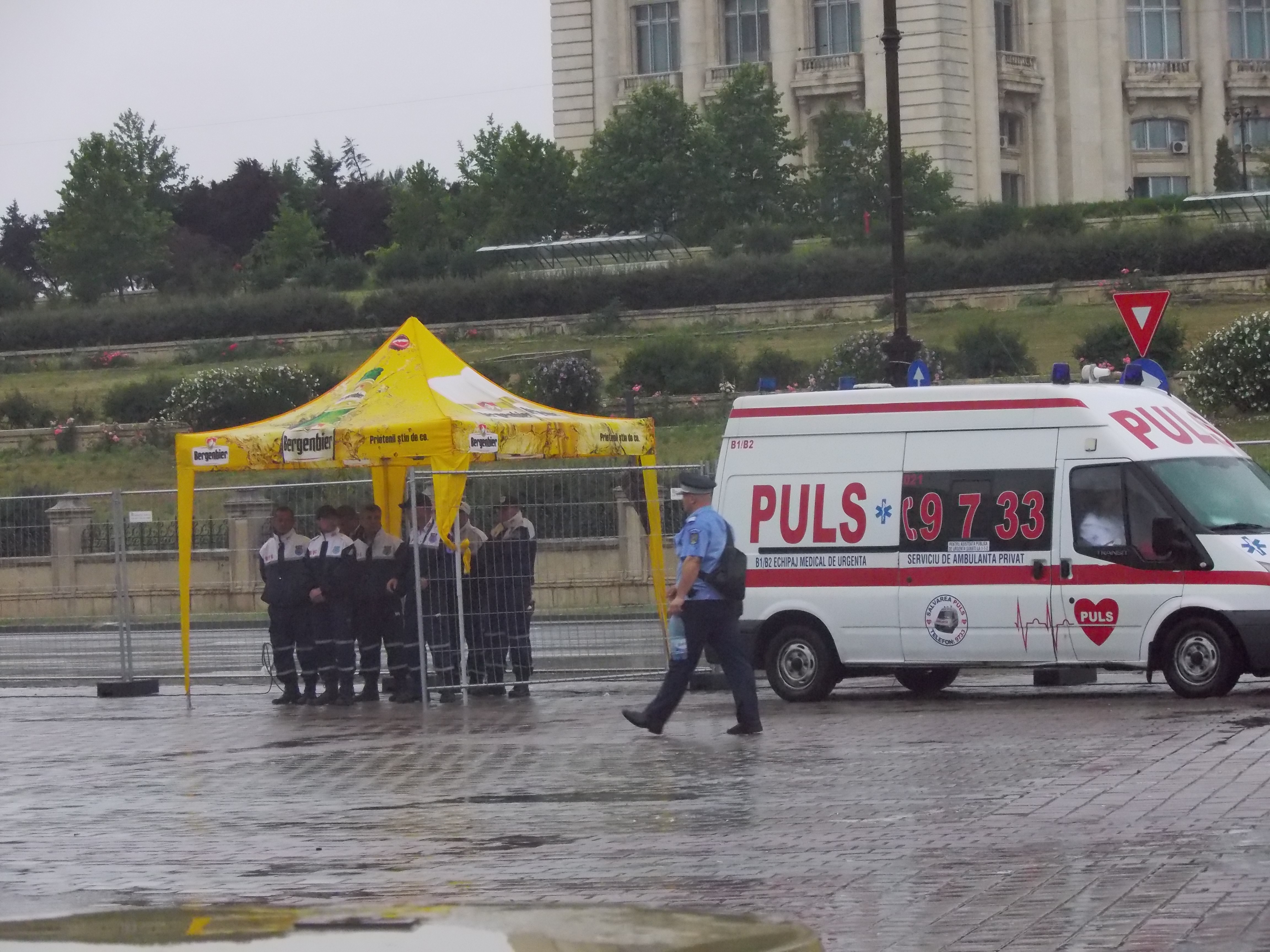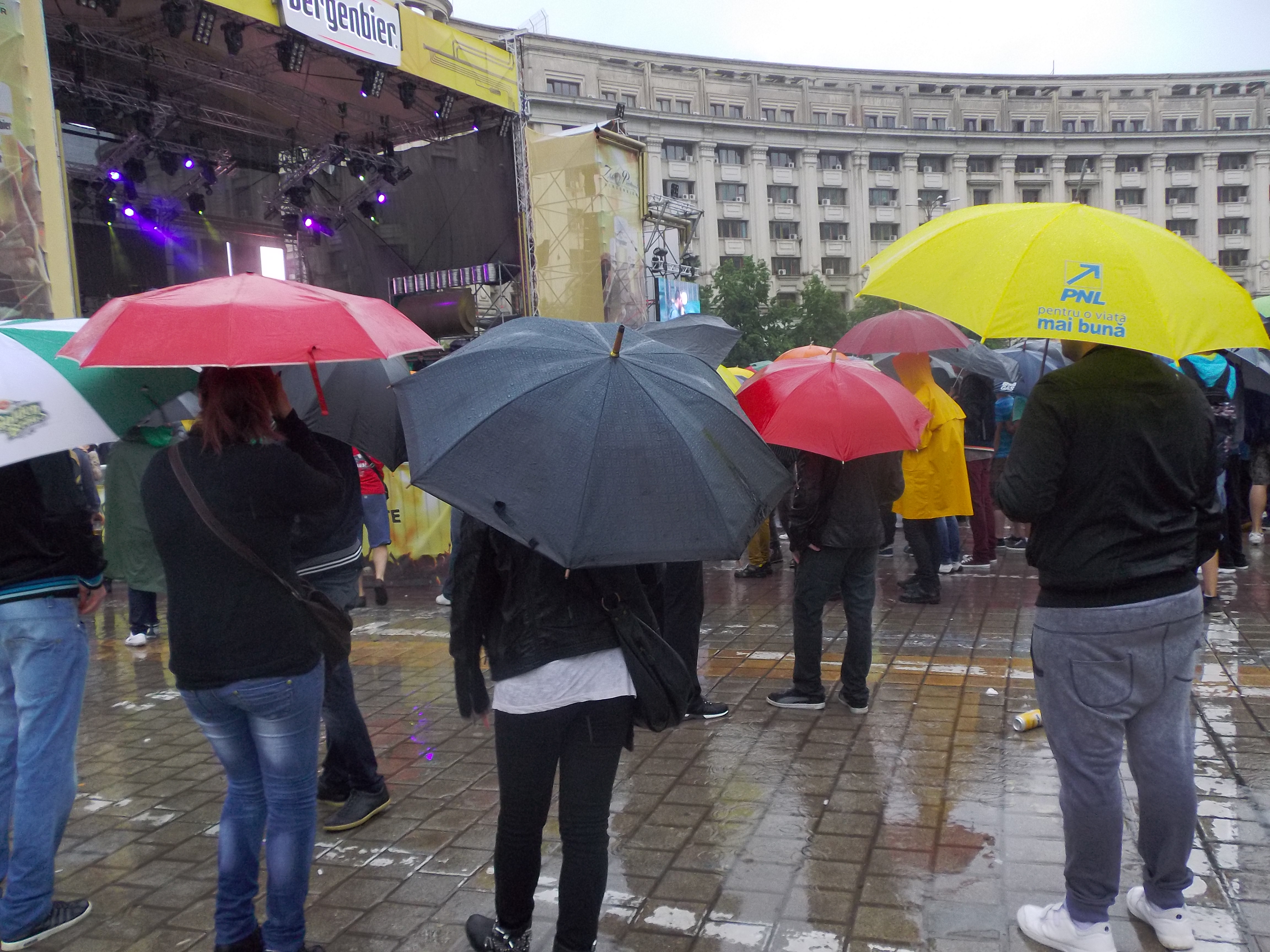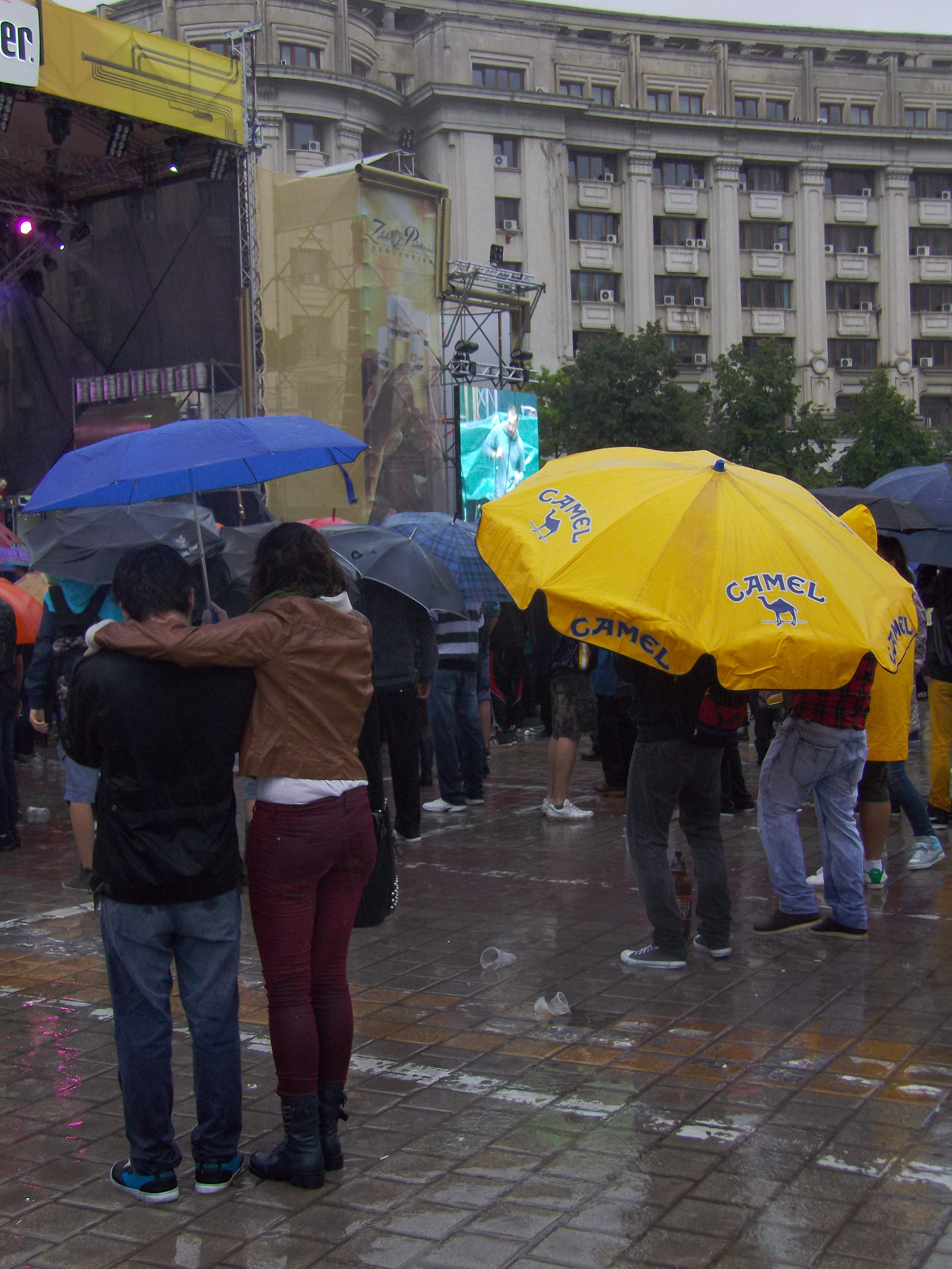 IMGP4113 IMGP4105 IMGP4121 IMGP4107 IMGP4125 IMGP4109Ploua pe scenă, ploua în culise, chiar şi fetele care vindeau jetoane pentru bere stăteau cu umbrele în gheretele aferente… Se pare că nimeni, nici măcar organizatorii, nu a consultat vreo prognoză meteo. Cei care trebuiau să asigure paza şi protecţia în timpul concertului păreau că se păzesc cel mai bine de ploaie.