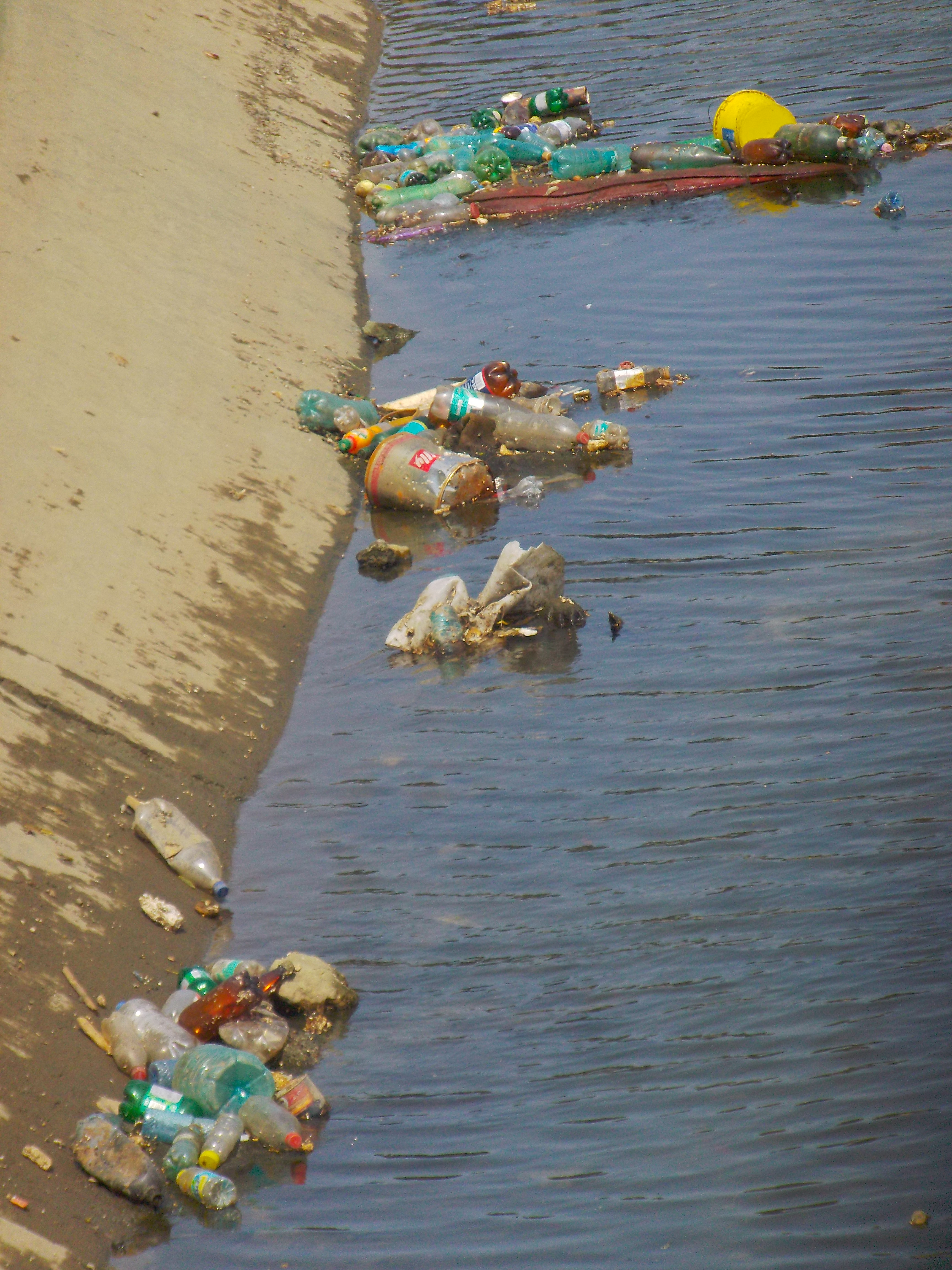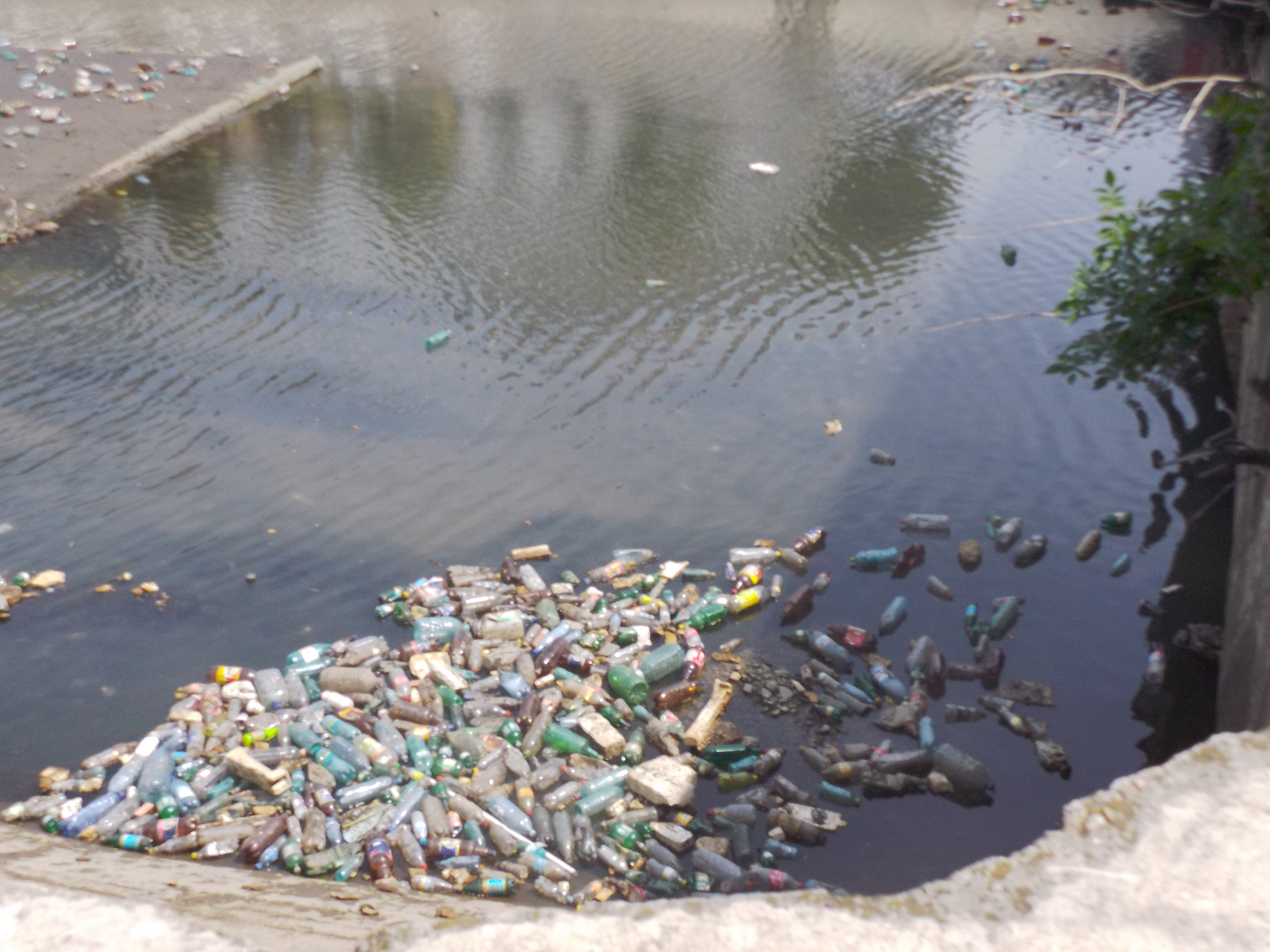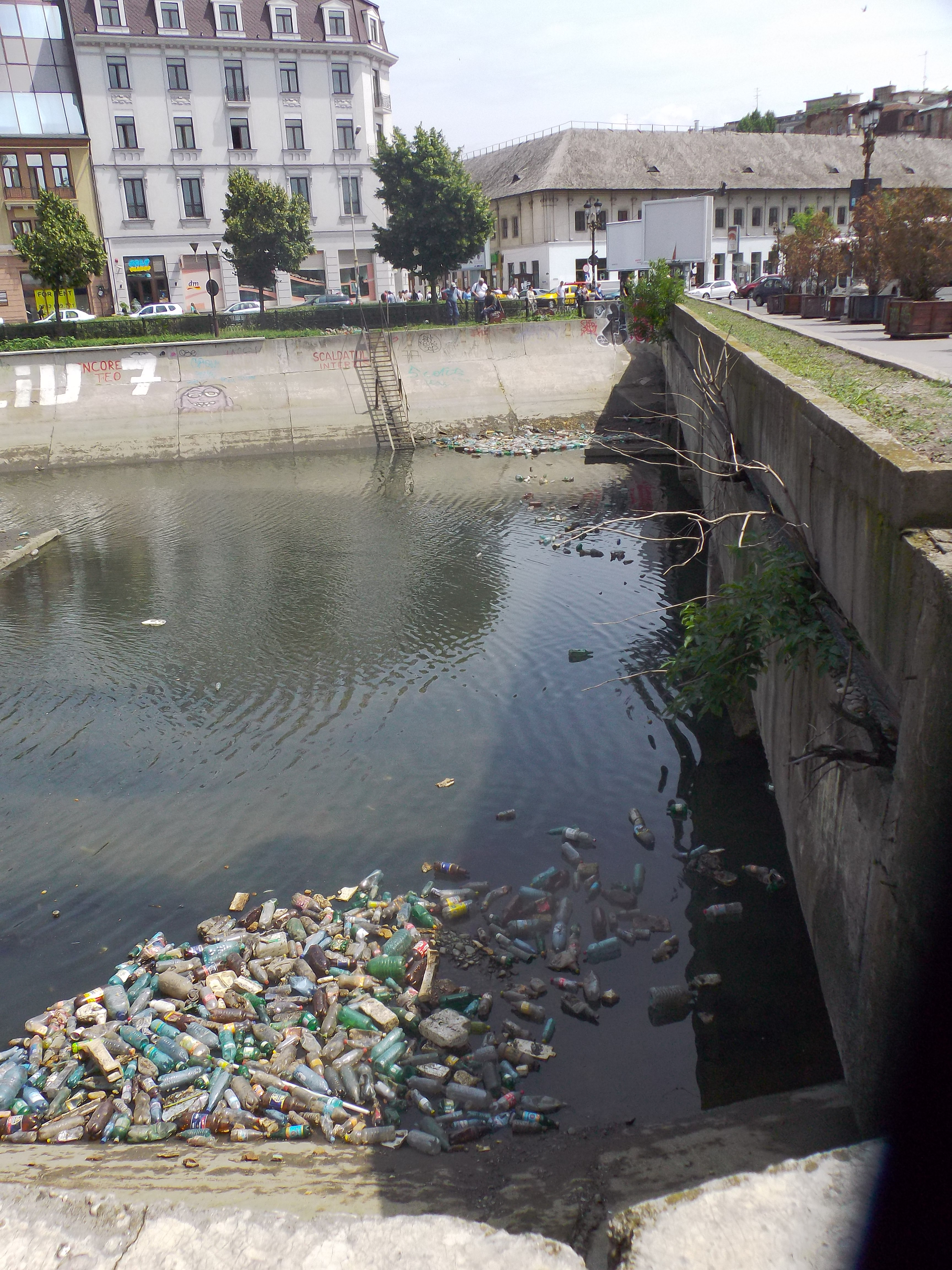 Iata ca riul a fost infrumusetat! Nu sunt ratze mandarin sau lebede, dar avem puzederie de PET-uri multicolore, un simbol al epocii contemporane.