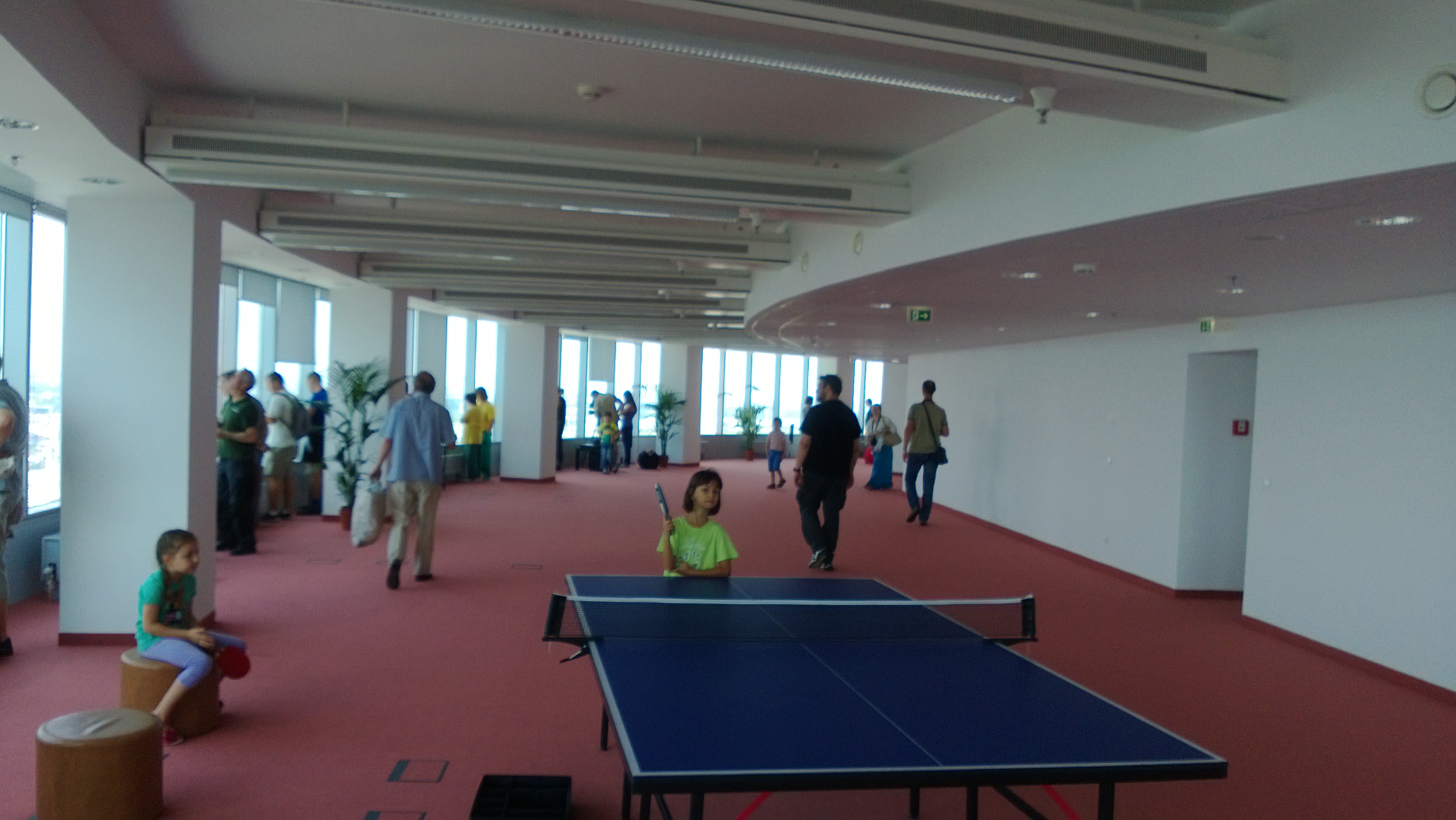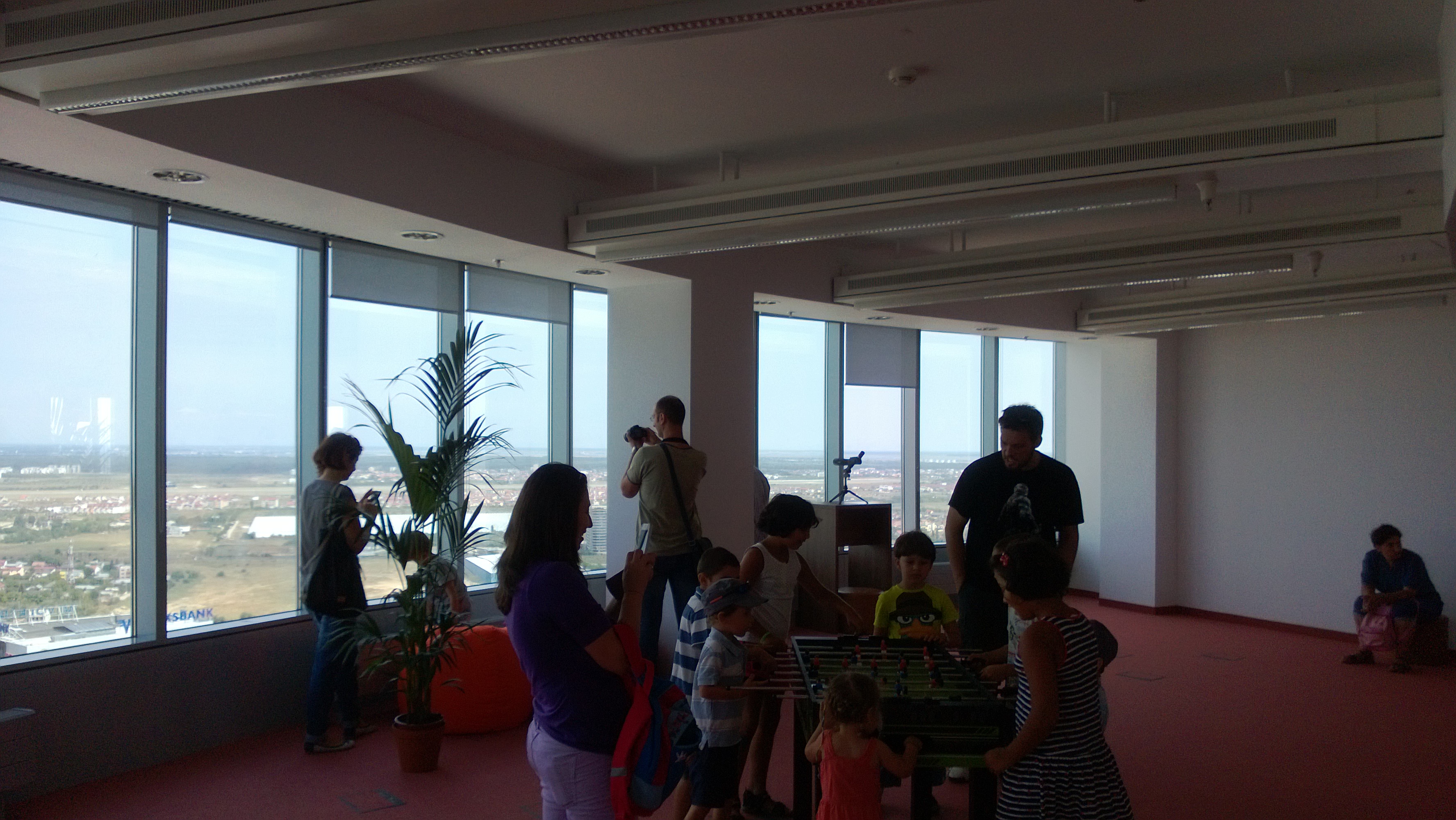 Special pentru vizitatori, întregul etaj 34 al clădirii a fost pregătit cu zone de relaxare şi jocuri, telescoape pentru observarea principalelor atracţii ale Bucureştiului, dar şi un spaţiu dedicat artei. Până în luna septembrie, în fiecare zi de vineri, între 11.00 şi 18.00, bucureştenii pot urca gratuit la etajul 34 al imobilului. Nici corporatiştii din zonă nu au fost uitaţi. Angajaţii multinaţionalelor din zonă pot practica fussball, tenis de masă sau se pot delecta cu jocuri pe consolă, în fiecare zi de joi, în intervalul orar 17-21. DETALII