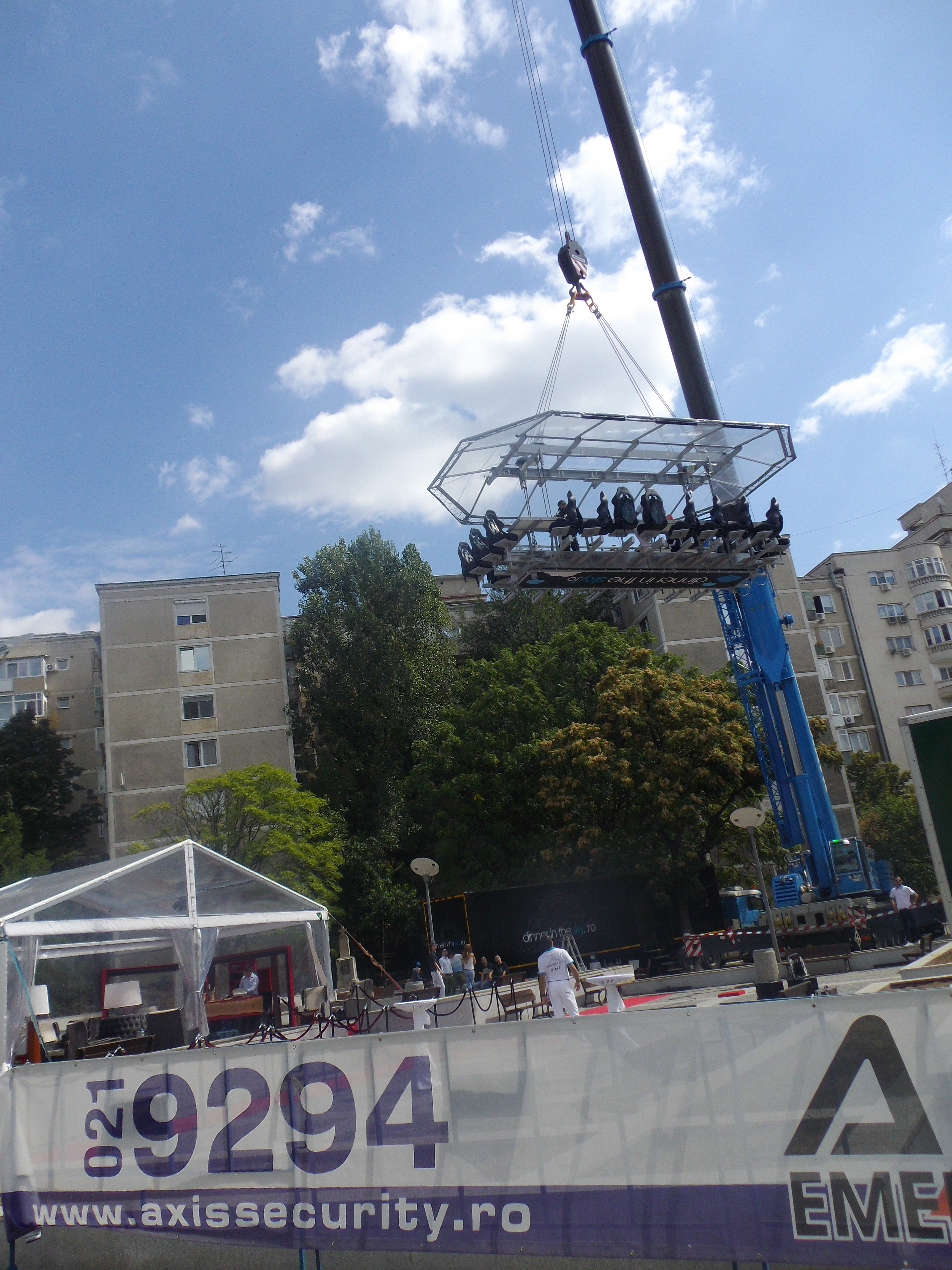 INSIDER: „În perioada 6-9 septembrie în Centrul Vechi al Capitalei (în spatele Hanului lui Manuc) se desfăşoară primul eveniment „Bucharest in the sky”, unde poţi lua masa la 50 de metri înălţime. Singura condiţie obligatorie este aceea să nu te apuce nevoile fiziologice în timpul mesei! …Cei care au servit masa astăzi, în jurul orei 17.00, s-au putut bucura de un spectacol unic în viaţă – bătălia dintre suporterii unguri şi jandarmerie, în Centrul Vechi. Pe fundal lipsea doar melodia „Hungarian Dance No.5”.”