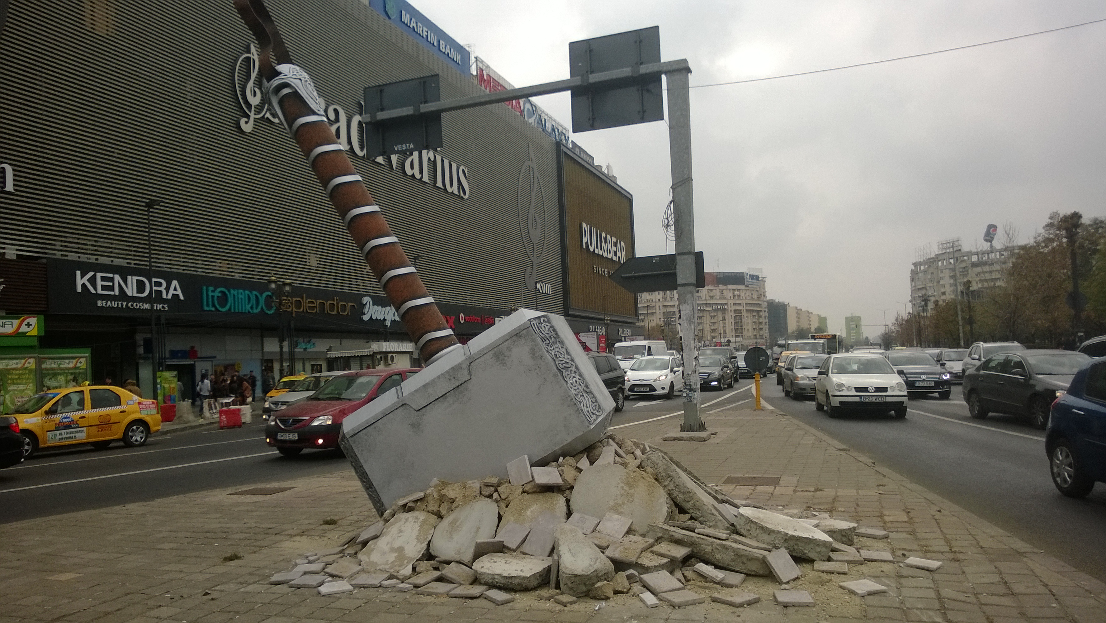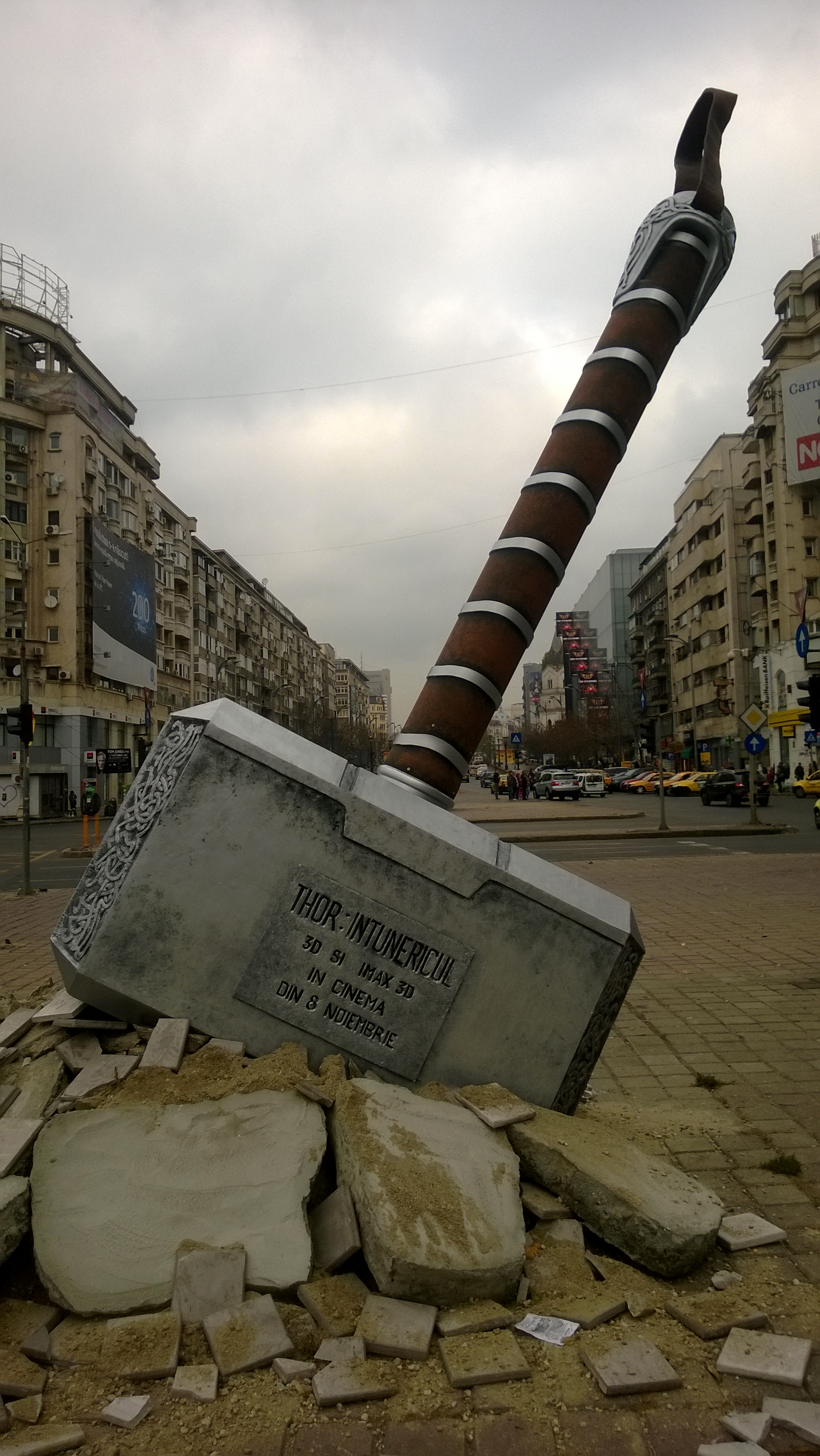ThorCiocanul din Piaţa Unirii anunţă venirea zeului Thor în România, odată cu lansarea pe marile ecrane a producţiei Marvel „Thor: The Dark World / Thor: Întunericul”.
