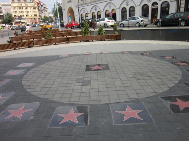 inaugurat Aleea Celebrităţilor şi în Sibiu!), adică steluţe mici pentru actori mari. Aceştia au îngenunchiat aici, au atins cu palmele, iar unii chiar au sărutat steluţa cu ochii în lacrimi pentru că li s-a recunoscut valoarea pentru totdeauna. Acum, echipa lui Dorel joacă ţonţoroiu cu cizma cauciucată! Era de bun simţ să lipească nişte folii protectoare peste aceste stele simbolice. …Facem abstracţie de steluţa centrală care probabil a fost stramutată într-un depozit de moloz!”