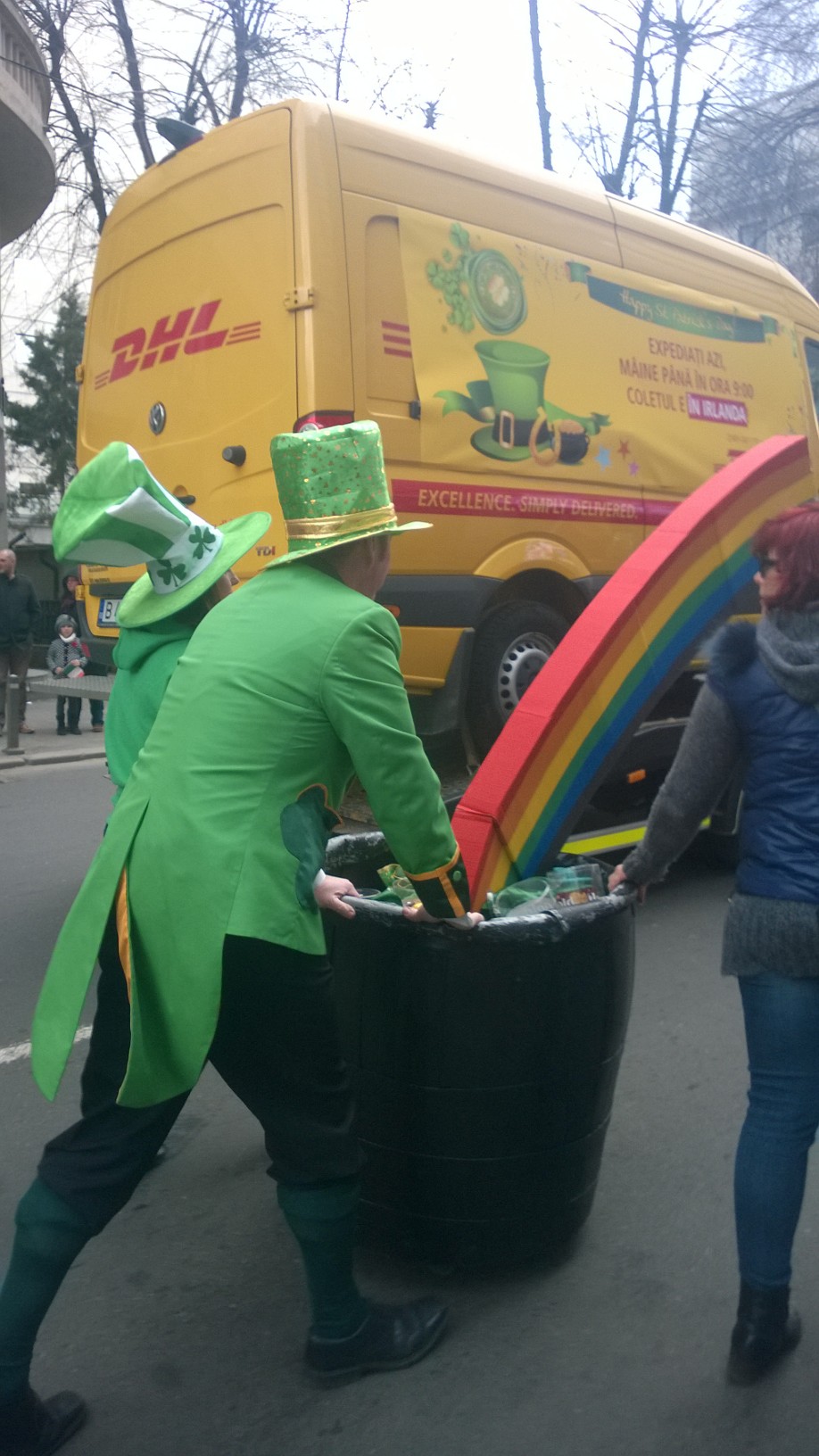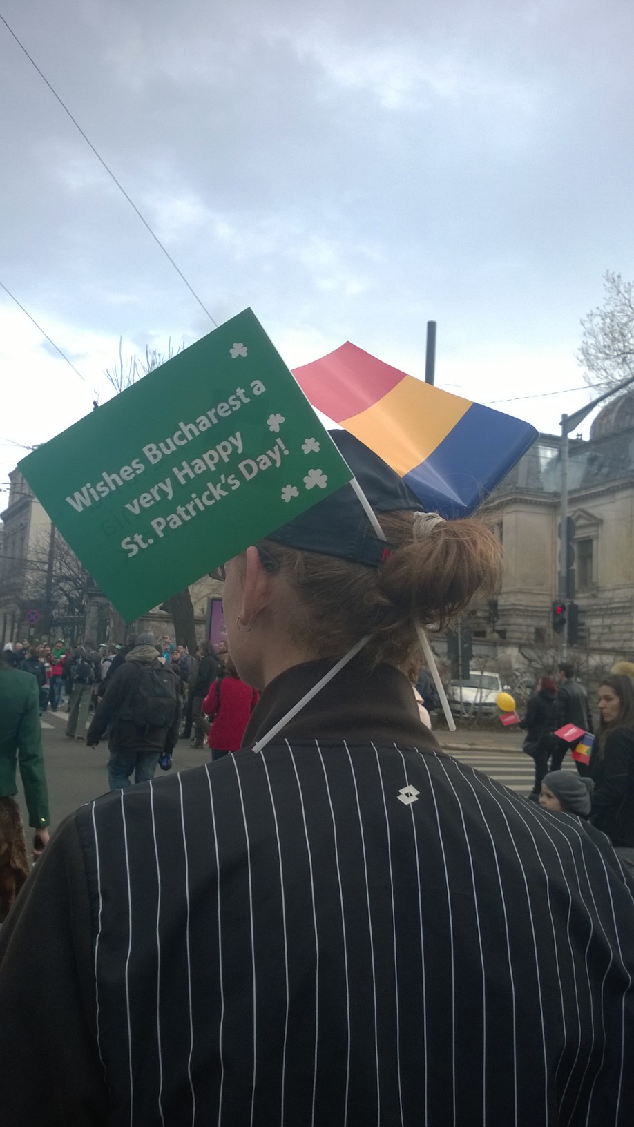 INSIDER: „Încet-încet, se pare că Patrick Day devine sărbătoare tradiţională în România. Dacă anul trecut parada de Patrick Day de la Bucureşti a fost considerată mai spectaculoasă decât cea din Irlanda, anul acesta mie mi s-a părut mai subţire. Un fel de care alegorice ale sponsorilor probabil, culminând cu cel al berii Ursus care era gol, fără beri şi făra urşi! În rest, vânt rece şi participanţi zgribuliţi între Piaţa Victoriei şi Piaţa George Enescu, cu gândul la râurile de bere de după. Happy Patrick Day!”