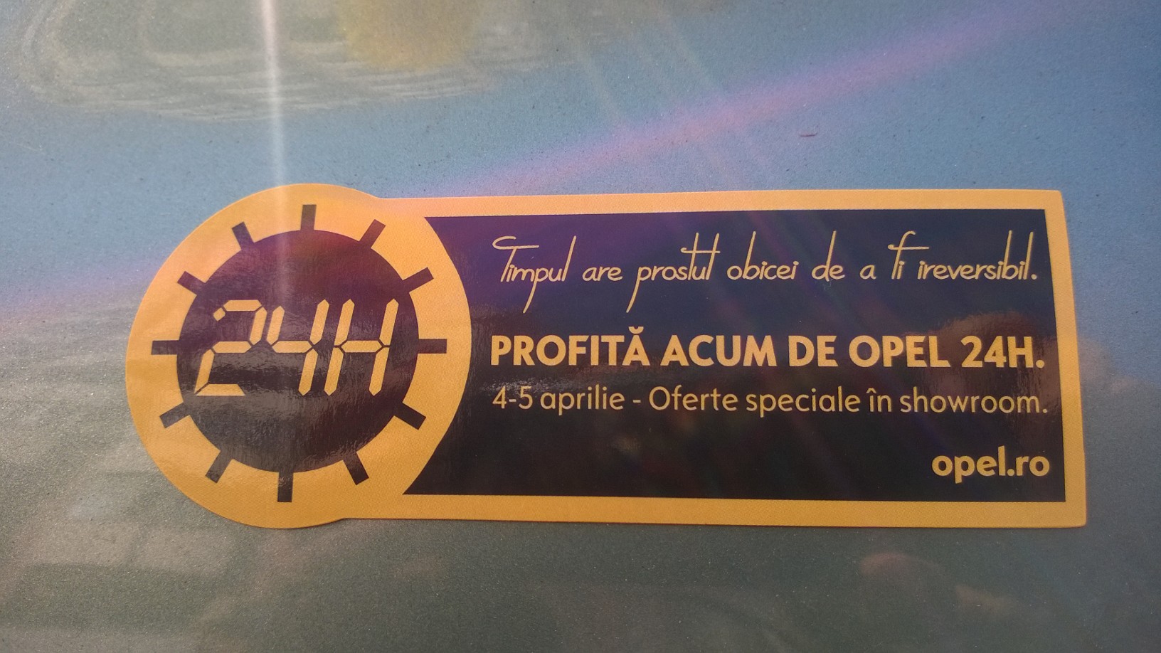 INSIDER: „De obicei, înainte să scot maşina din parcare, îmi golesc ştergătoarele de pliante-spam cu reclame. Azi, am găsit un sticker aplicat direct pe maşină. Se pare că marketing-ul a trecut la next level – de la „dacă nu ştii, te învăţăm şi dacă nu poţi, te ajutăm”, s-a ajuns la „dacă nu vrei, te obligăm să cumperi”!