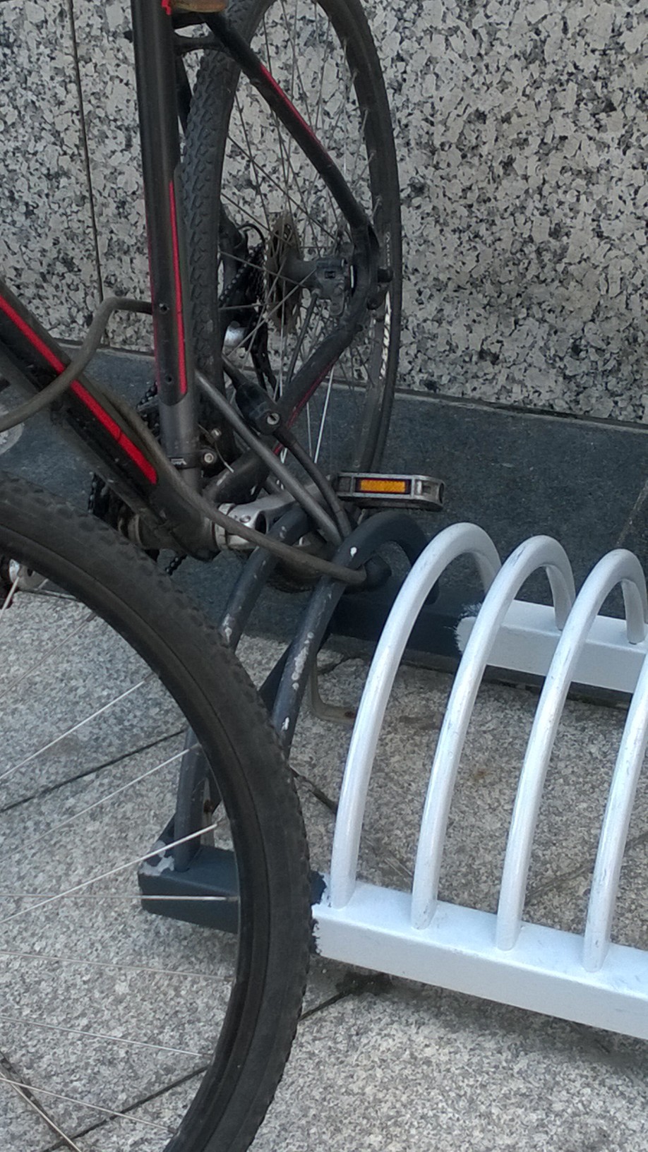 INSIDER: „În faţă la BCR Victoria, pentru angajaţii eco friendly şi pentru cei fară maşină în dotare, banca face investiţii masive în vopsitul suporţilor aferenţi. Din nefericire (sau din fericire!), nu toată lumea cooperează. Dacă era sediul Apple, asta sigur era bicicleta lui Steve Jobs!”