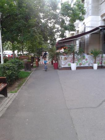 Trebuie să fii mereu în priză şi să mânuieşti cu viteză căruciorul copilului, tricileta sau copilaşul care merge cu viteza melcului. Nu prea ştiu la ce mai folosesc băncuţele de pe alee de vizavi de terase, doar dacă vrei să fii încă o piedică pentru bieţii trecători şi aşa destul de încercaţi. De la Muncii (muncă) către casă din terasă în terasă. Sau invers?! Hâc!” SURSA FOTO