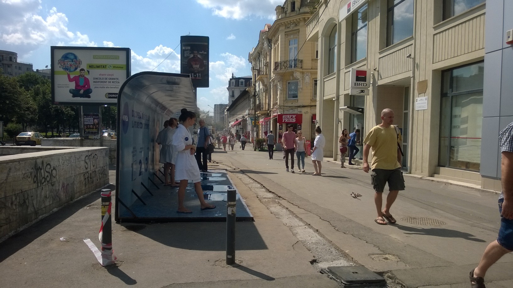 INSIDER: „De vreo câteva zile în Piaţa Unirii, spre Hanul lui Manuc, la ieşirea de metrou, Nivea a montat un duş public, iar câteva fete în halate de baie împart pliante trecatorilor. Nu ştiu de ce, dar de fiecare dată mă loveşte un sentiment pudic şi întorc instinctiv capul în sens opus, de parcă tocmai am intrat peste un necunoscut în baie. Pardon, Nivea!”