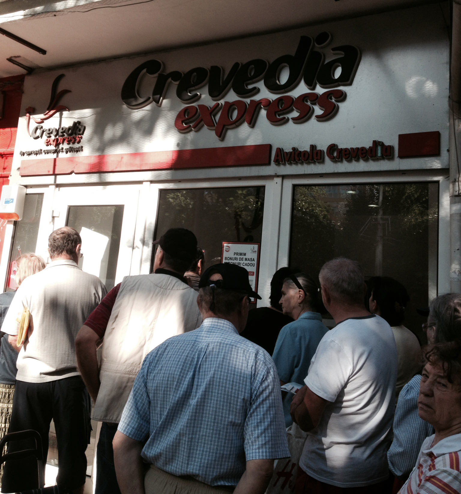 INSIDER: „Coadă la „Puii de Crevedia” ca în vremurile de altădată, înainte să se deschidă magazinul din str. Doamna Ghica, la ora 9.45.”