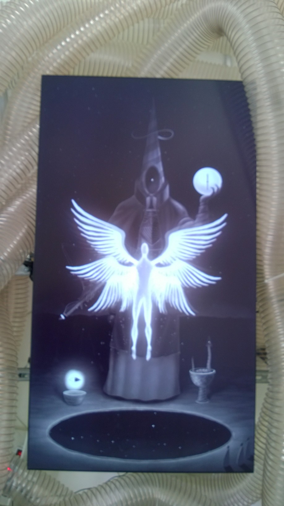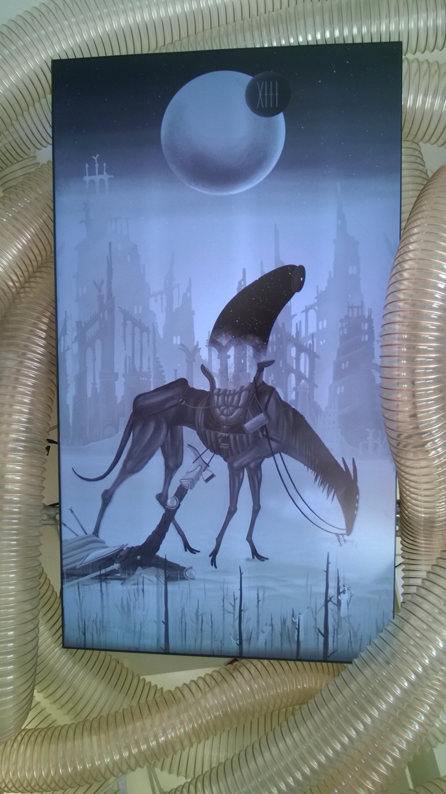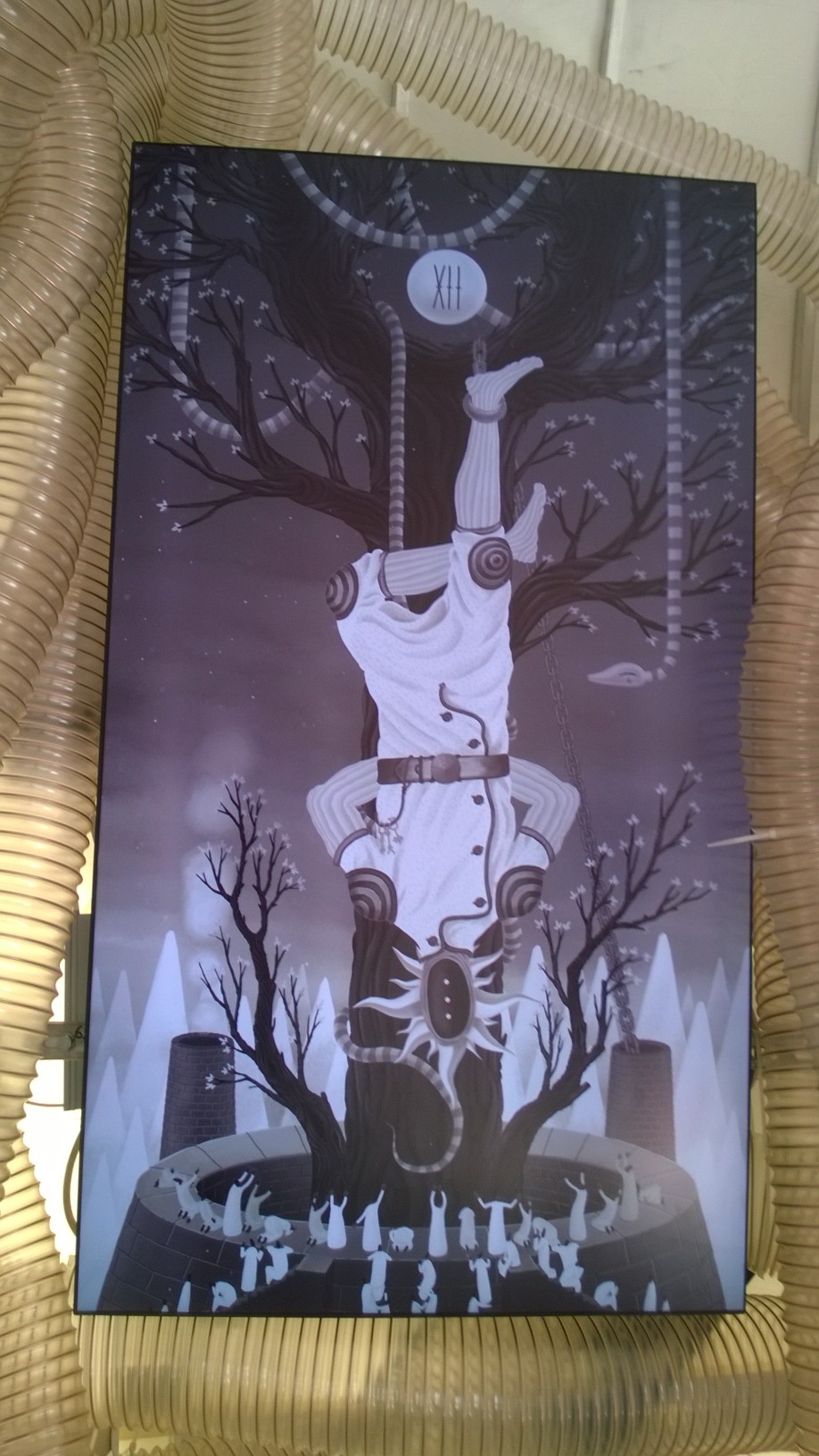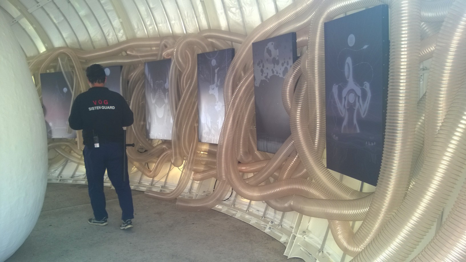 Întreaga expoziţie “Feed Me!” este conţinută de lucrarea artistei Marilena Oprescu Singer: o capsulă senzorială în forma unui uriaş cocon, denumit “Womb of Tra”, cu o înălţime de 5,5 metri şi o lungime de 9 metri, care îşi înghite vizitatorii şi se hrăneşte cu energia lor fizică pentru a exista. Odată înghiţiţi de pântecele “monstruoasei şi veşnic nesătulei “Tra”, vizitatorii sunt înconjuraţi de şapte picturi fermecate: “The Secret Memories of Noper”. Lucrarea artistului Radu Pop a.k.a. Noper, este o instalaţie video interactivă compusă din şapte animaţii high definition pe care publicul le poate controla prin atingerea cililor cu care este căptuşit la interior coconul “Womb of Tra”. DETALII