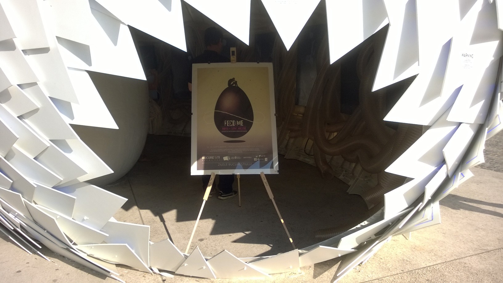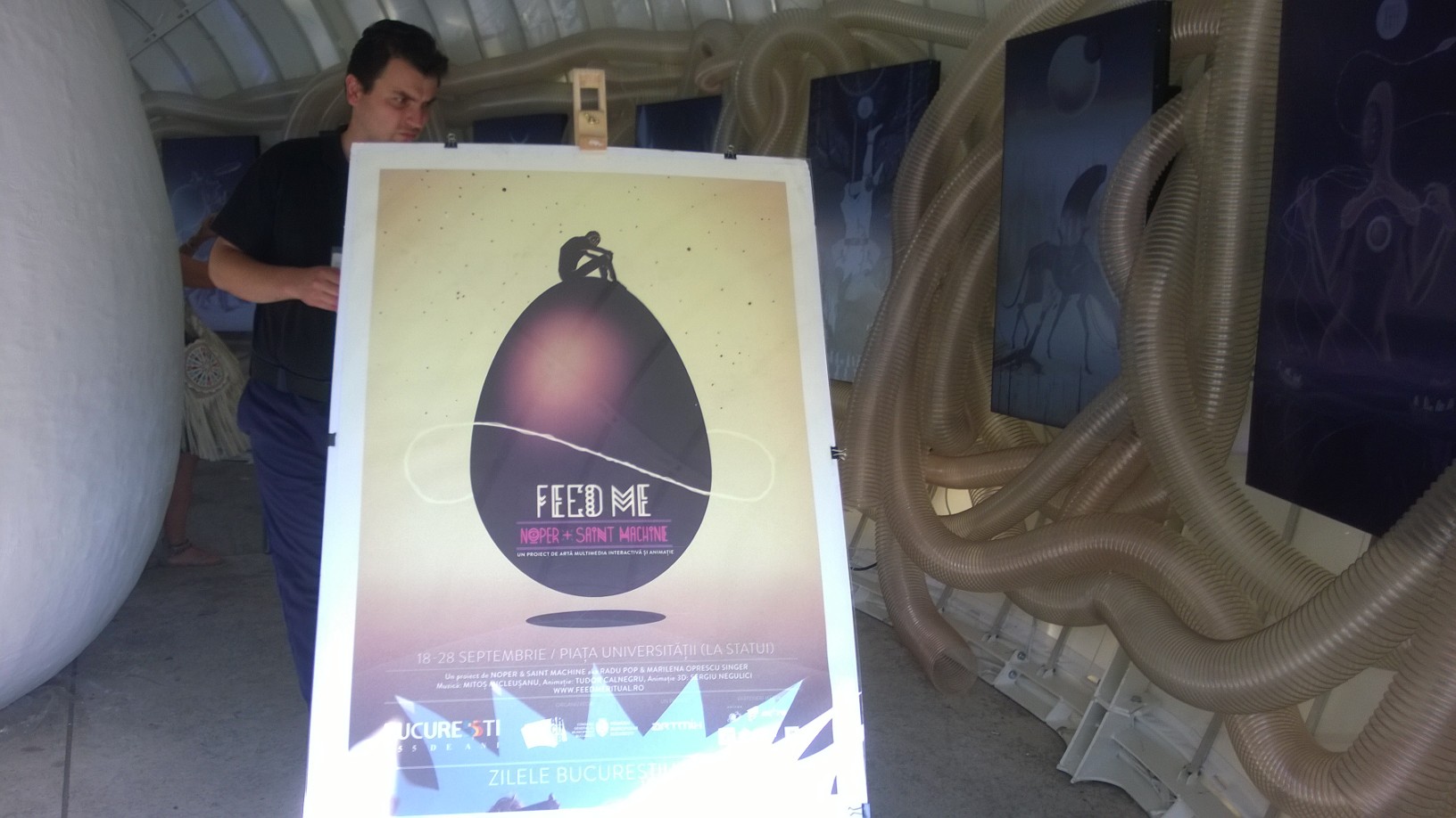 INSIDER: „În perioada 19-28 septembrie în Piaţa Universi- tăţii puteţi vizita o Instalaţie de artă contem- porană „Feed Me!”, care explorează relaţia de interdependenţă dintre lucrarea de artă şi publicul său. Construită autoironic sub forma unei chemări a supuşilor Monstruoasei şi Veşnic Nesătulei Zeităţi TRA la ritualul de hrănire al acesteia, expoziţia este un organism viu care se alimentează cu energia produsă de mişcările oamenilor pe T.RA. Normal, intrarea este liberă!”