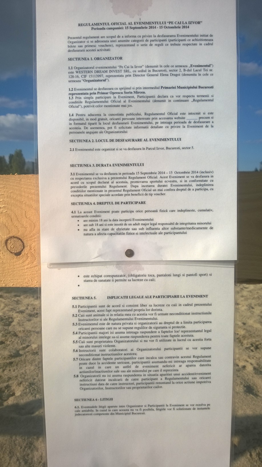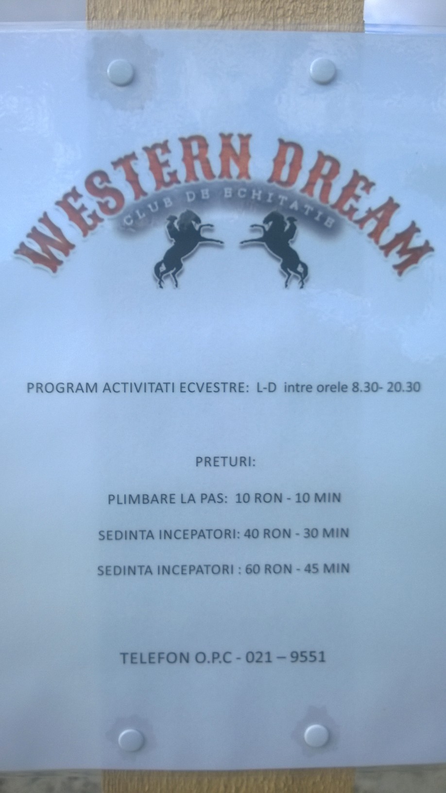1. Oameni buni, dacă nu vreți să fiți bătaia de joc și victimele amenințărilor și crizelor de nervi ale unor grăjdari convertiți în patroni plini de ifose, NU MERGEȚI LA ECHITAȚIE în cadrul evenimentului care are loc până miercuri, 15.10.2014, sub numele de WESTERN DREAM – PE CAI LA IZVOR și care s-ar putea repeta în aceeași manieră!!!!