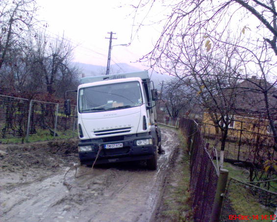 INSIDER: „Fotografie făcută de mine, ieri 09.12.2014, ora 14:12, în loc. Brad, jud. Hunedoara, în cartierul Poieniţa, la intersecţia dintre str. Plaiuri şi str. Rândunelelor, în care se observă o autoutilitară a serviciului local de salubritate Retim împotmolită în canalul rezultat din cauza necompactării umpluturii în straturi uniforme şi succesive conform cerinţelor proiectului la pozarea conductei de PVC din cadrul Contractului „HD-CL 6 Reabilitarea şi extinderea aducţiunilor şi reţelei de distribuţie a apei şi a reţelei de canalizare din Brad”, proiect cofinanţat de UE prin Ministerul Mediului, POS Mediu.