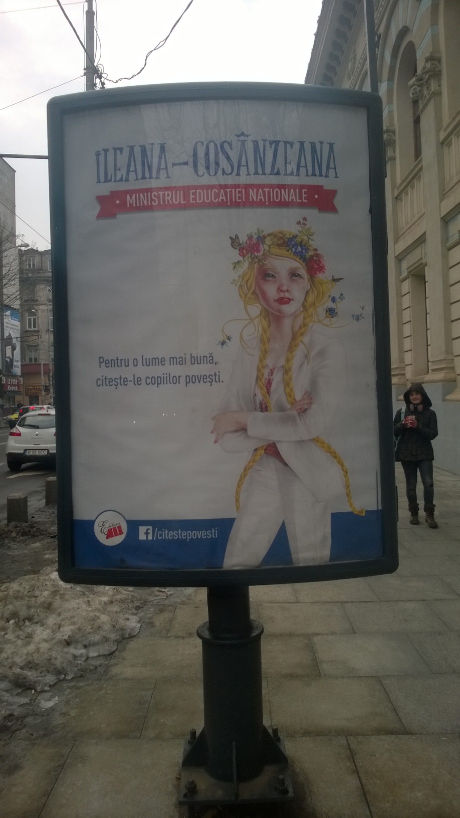 INSIDER: „În faţa Liceului Gh. Lazăr din Bucureşti este o reclamă care ne îndeamnă să citim poveşti, cel puţin la prima vedere. Personajele de poveste au devenit miniştri – Ileana Cosânzeana e ministra turismului, iar Harap Alb prim-ministru, reprezentarea lor fiind undeva între „Povestiri din criptă” şi Păpuşa Chucky. Oare Scufiţa Roşie o fi bună la Sănătate, că de Lup ştim deja că are peste tot funcţia de „paznic la oi”!? Acum ar fi mai educativă reeditarea „Fermei animalelor”, după ce „Popeye the sailor man” a fost retrasă din librării pentru că nu mai e de actualitate!”