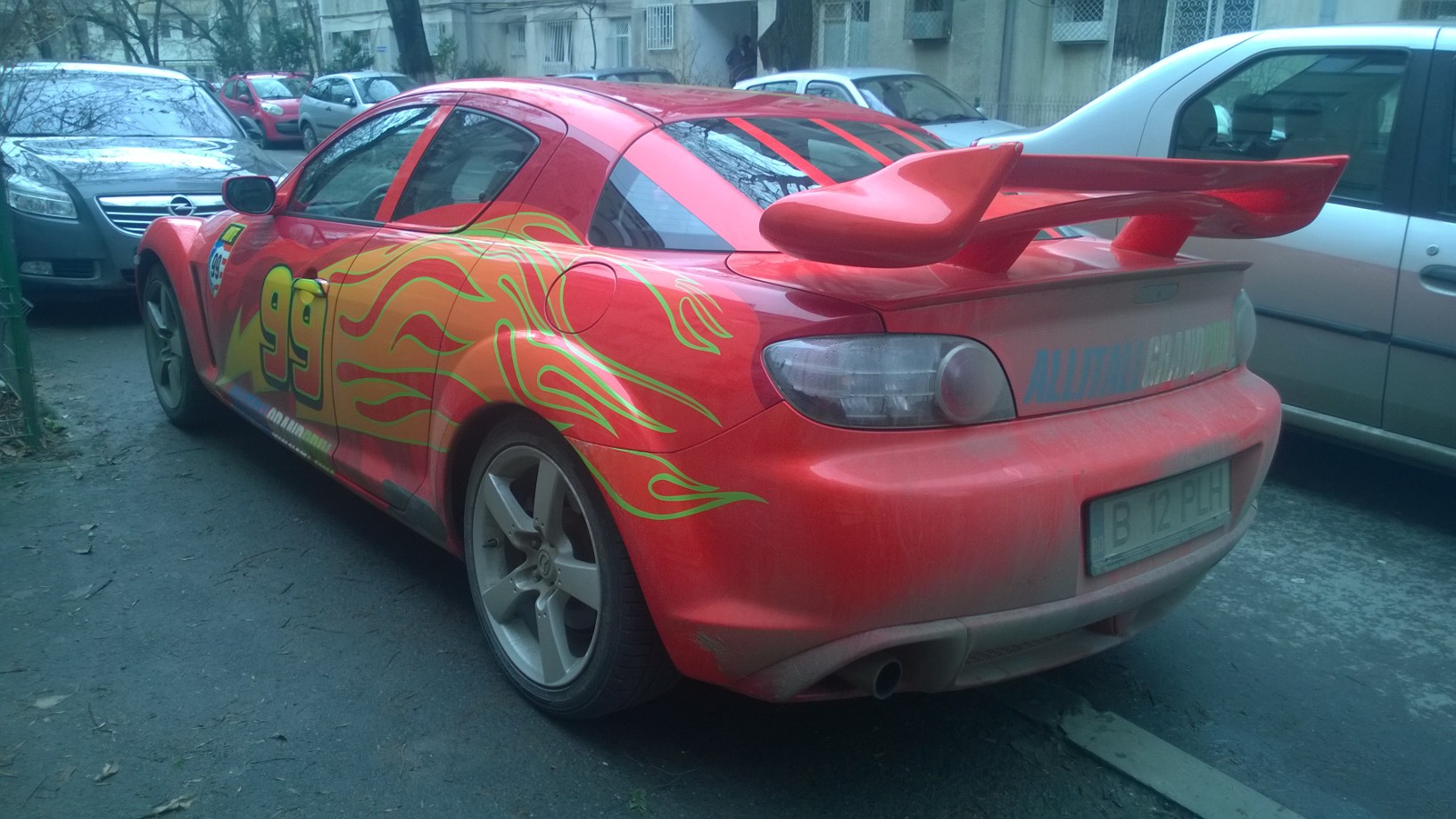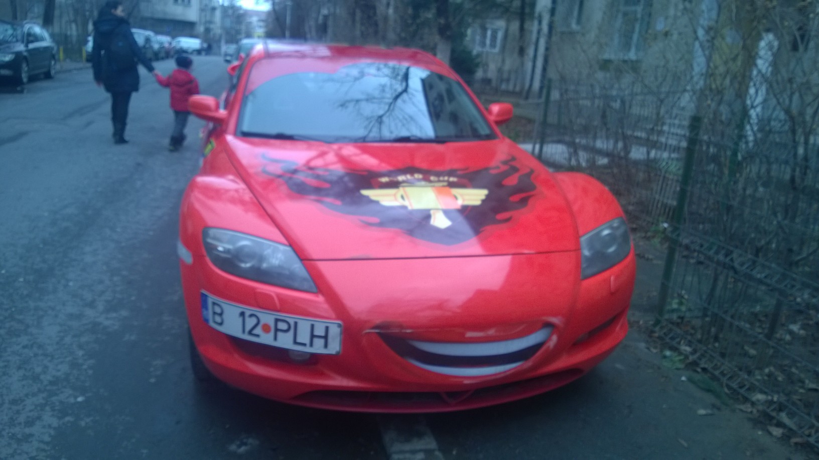 INSIDER: „Un posesor de Mazda, probabil mare fan Cars, l-a adus pe Fulger McQueen pe străzile Capitalei. Nu ştiu povestea maşinii, dar „hibridul” aduce multă bucurie printre copiii mici şi mari care rămân blocaţi când o văd la semafor!”