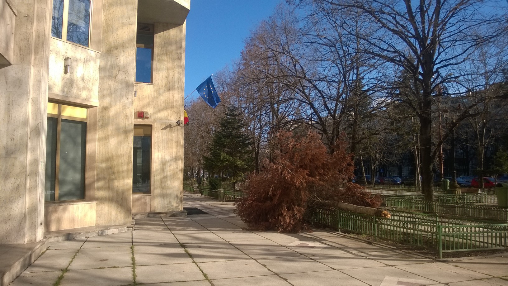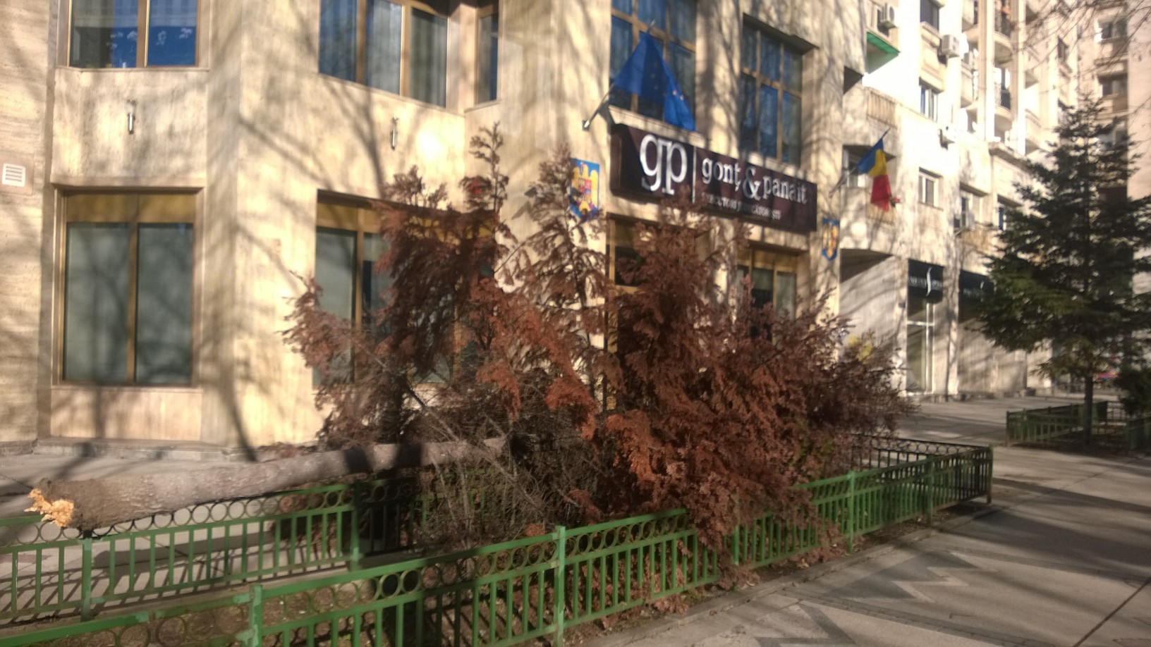 INSIDER: „Astăzi, viteza vântului în Bucureşti a fost de maxim 28 km/h şi totuşi, pe Bd. Unirii, au început să cadă copacii peste alei. Deocandată, un brad s-a rupt de la rădăcină ca o scobitoare putrezită, însă mâine ar putea cădea altul peste un trecător. În curând, Piaţa Unirii ar putea deveni Piaţa Popicelor. Primarul general doarme!?”