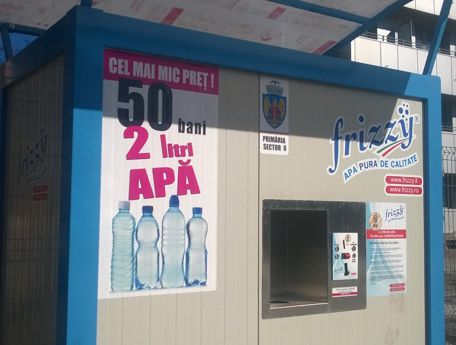 INSIDER: „În Grozăveşti, pe lângă căminele studenţeşti, am văzut un automat pentru apă şi sifon – 50 bani / 2 l. Pare un fel de concurenţă neloială pentru Carrefour!”