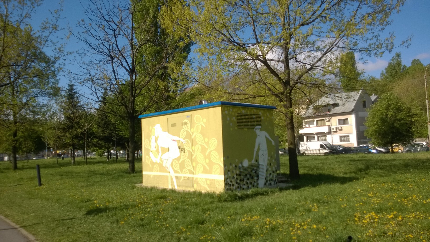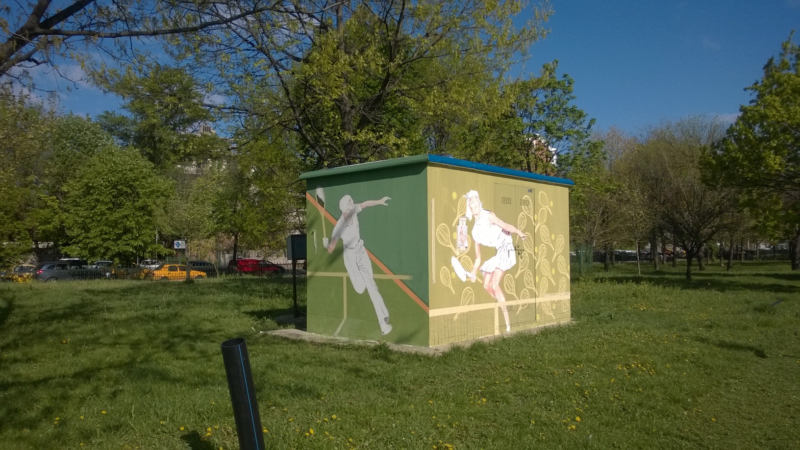 INSIDER: „Moda picturilor pe posturile de transformare Enel a ajuns şi în Parcul Izvor. Deşi nu există un teren de tenis în parc, noile „tablouri” cu jucători de tenis parcă imprimă locului un aer mai sportiv. În lipsa unor indicaţii clare, artistul a avut un singur dubiu dacă să acopere sau nu indicatorul din mijlocul tabloului care avertiza „Loc sub tensiune. Nu atingeţi. Pericol de moarte!”. În final, artistul s-a hotărât din pensulă că frumuseţea este mai presus de siguranţă!”