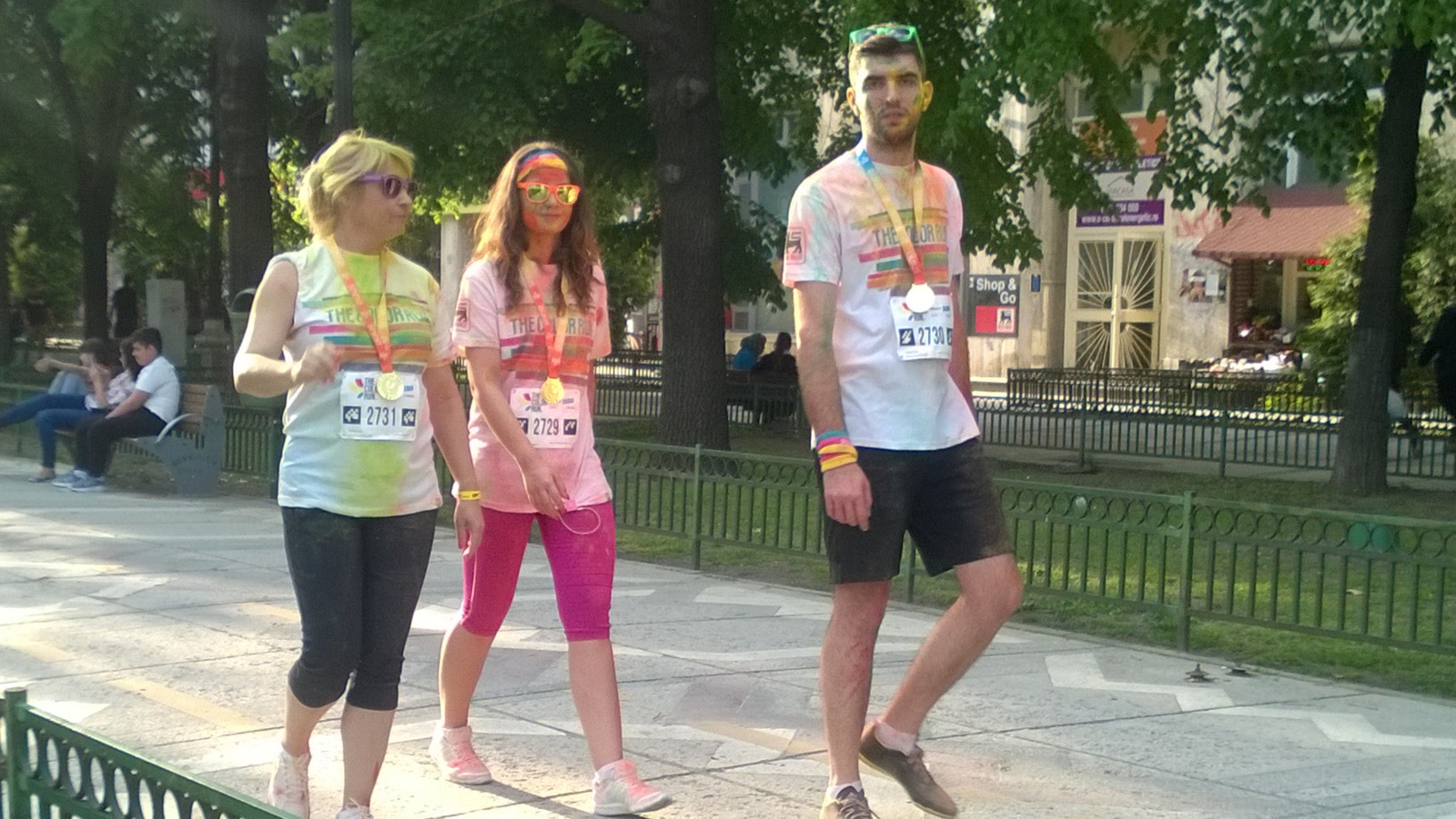 „The Color Run™ – cunoscută şi drept ”Happiest 5k on the Planet” – este o cursă euforică în culori, care celebrează sănătatea, bucuria şi originalitatea. Axată mai puţin pe timpii de alergare şi mai mult pe distracţia nebună, The Color Run™ este o cursă necronometrată de 5 kilometri, în cadrul căreia mii de participanţi sunt vopsiţi din cap până-n picioare în diverse culori, la finalul fiecarui kilometru parcurs. Distracţia continuă şi după încheierea cursei, cu un uriaş festival unde folosim din nou pudră colorată din belşug, pentru o explozie de fericire şi experienţe memorabile, fără a mai pune la socoteală milioanele de combinaţii de culori intense. Credeţi-ne, este cea mai tare petrecere post-5k din lume!” DETALII